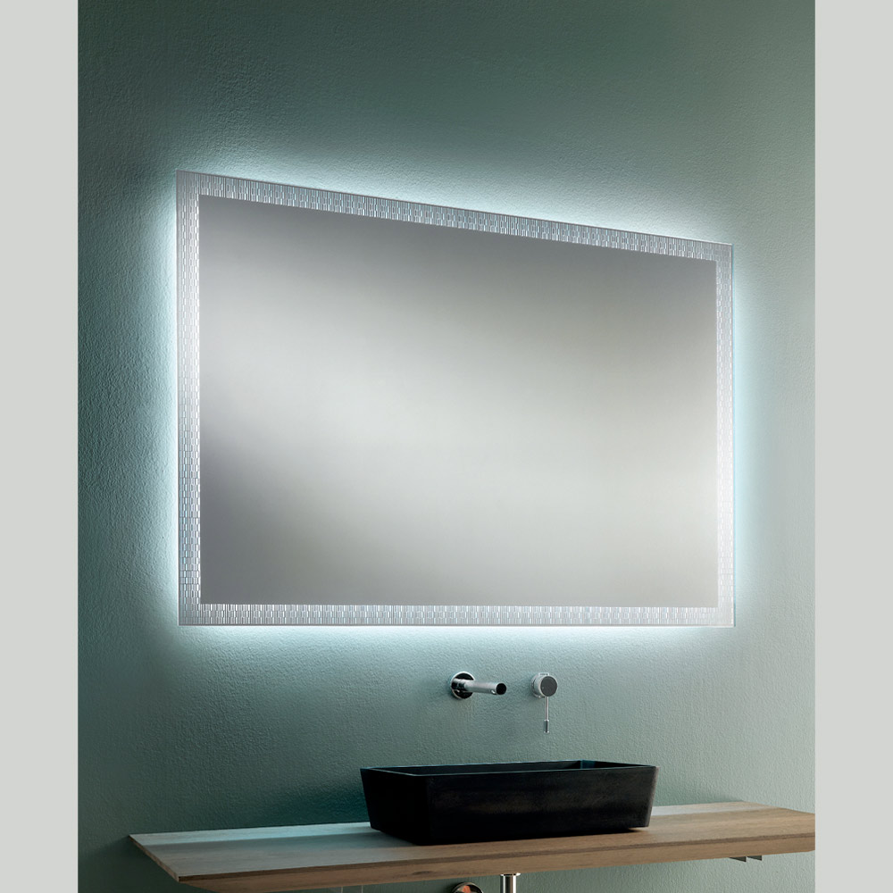 Mirror with laser engraved decoration and LED backlighting, Made in Italy