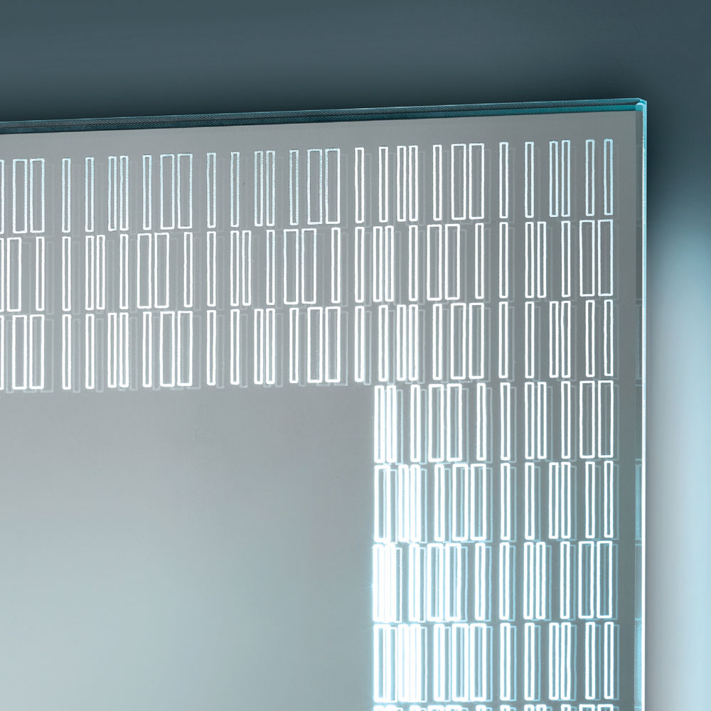 Mirror made with laser engraved decoration and LED backlighting , entirely Made in Italy.