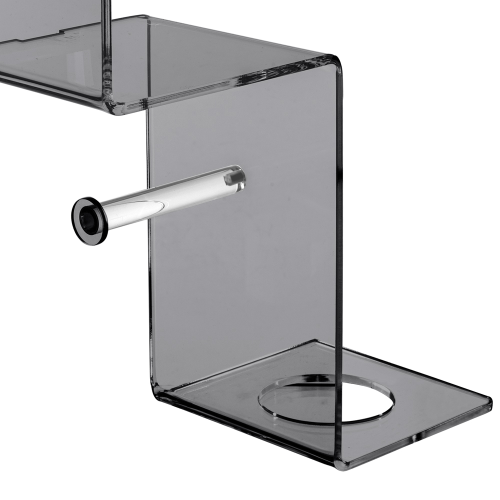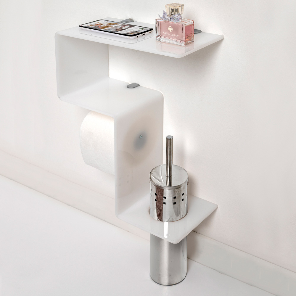 The toilet paper holder embodies refined aesthetics and unparalleled functionality , all in a single piece of bathroom decor. This accessory is made entirely of the highest quality plexiglass, ensuring uncompromising resistance and durability. Its design, characterized by fluid and modern queues, makes this object not only a useful everyday tool, but also a design element capable of distinguishing your bathroom with a note of elegance and unique brightness. The virgin polymer finishes integrate perfectly into any context, giving brightness and brilliance that remain unchanged over time, keeping the bathroom bright and welcoming. Its practical and intelligent structure offers the convenience of having everything you need at hand, without sacrificing style.