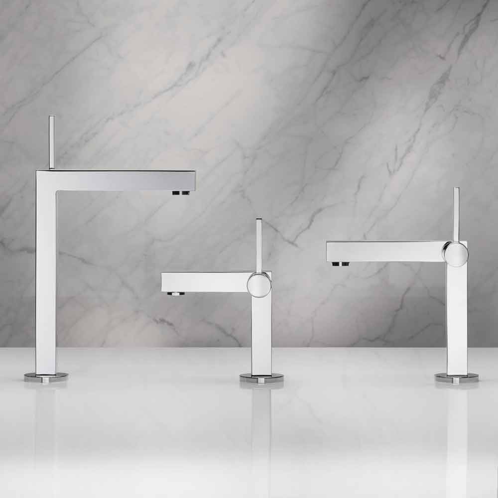This wonderful and elegant queue of bathroom taps combines round and square shapes to create unique and luxurious environments. Characterized by precise contours and extremely bright surfaces thanks to the chrome plating of the brass, these furnishing accessories will represent an exclusive design capable of revolutionizing your furniture in an elegant and refined way.