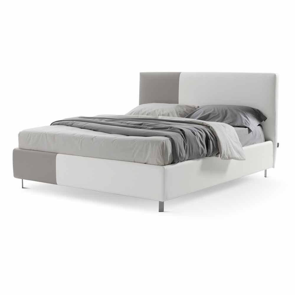 Double bed with luxury container in two-tone grey and white eco-leather, handcrafted in Italy.