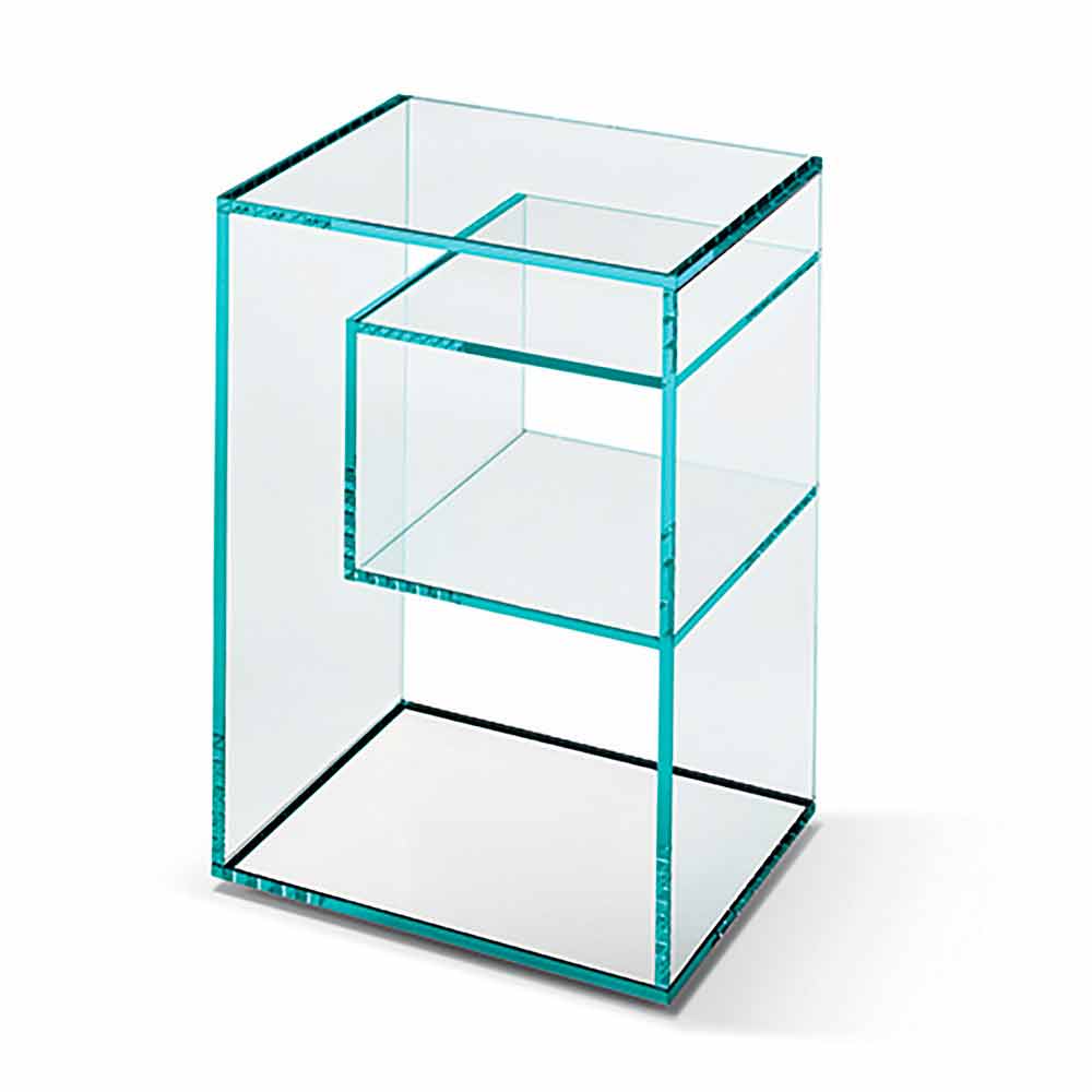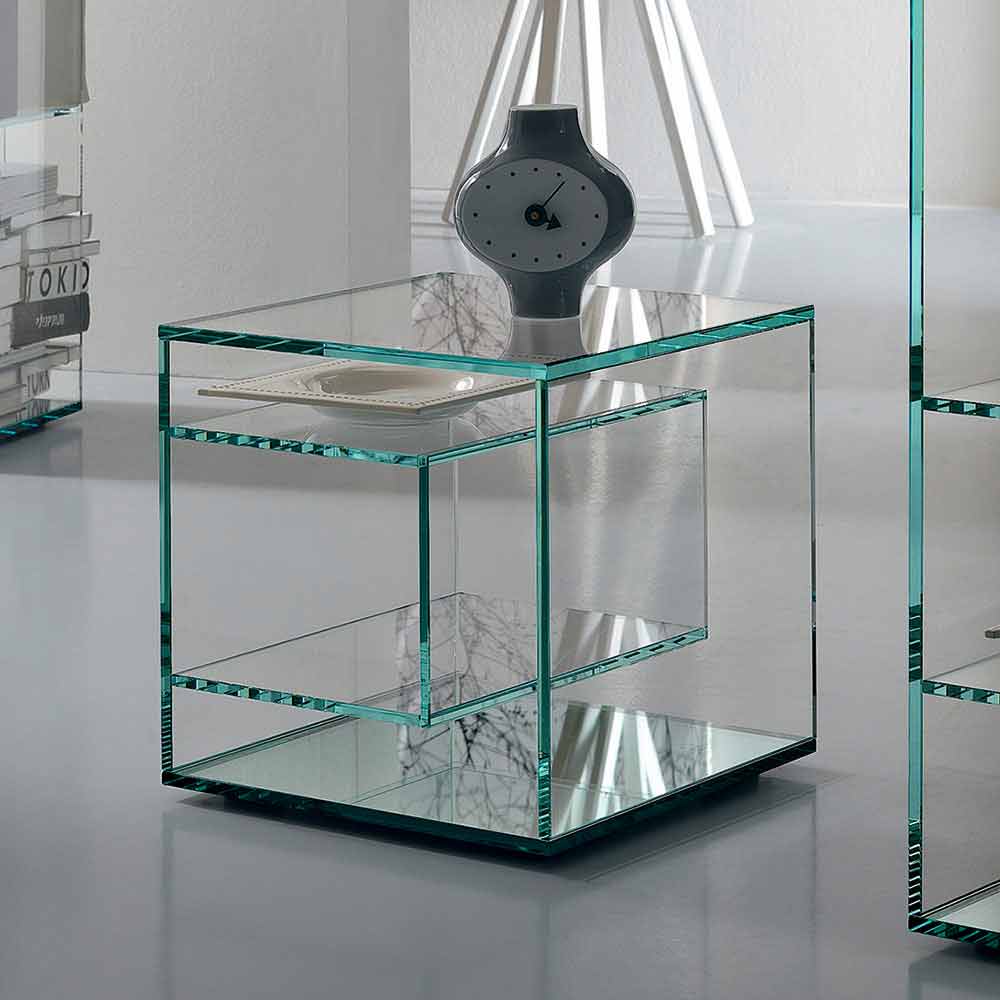 This bedside table is characterized by its elegant and minimal design entirely made of extra-clear glass.