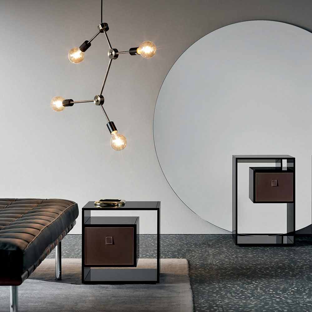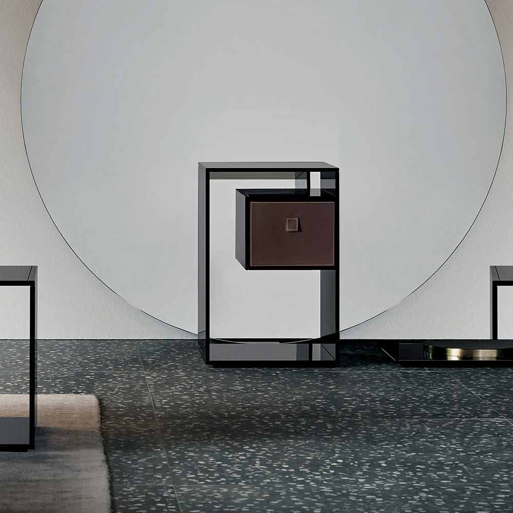 This bedside table is characterized by its elegant and minimal design entirely made of smoked glass.