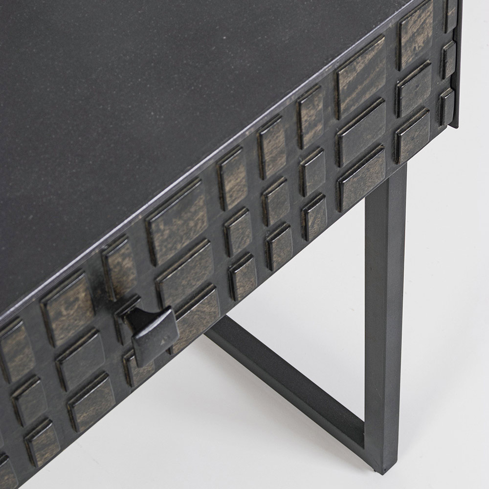 Bedside Table in Steel and Mango Wood of Ethnic Design - Mireo