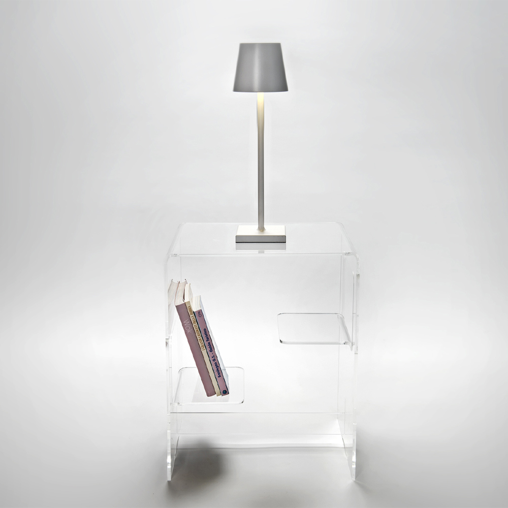 Modern design bedside table or coffee table in transparent or smoked plexiglass made in Italy.