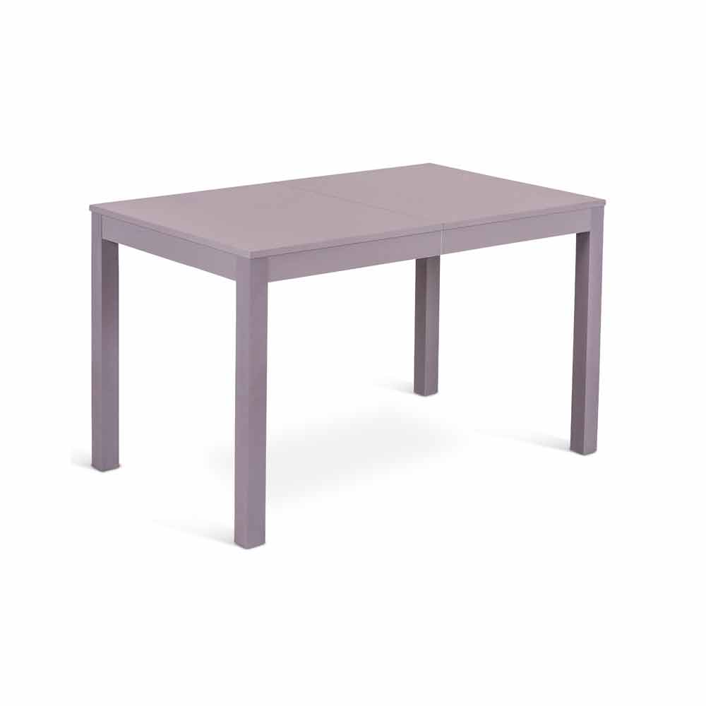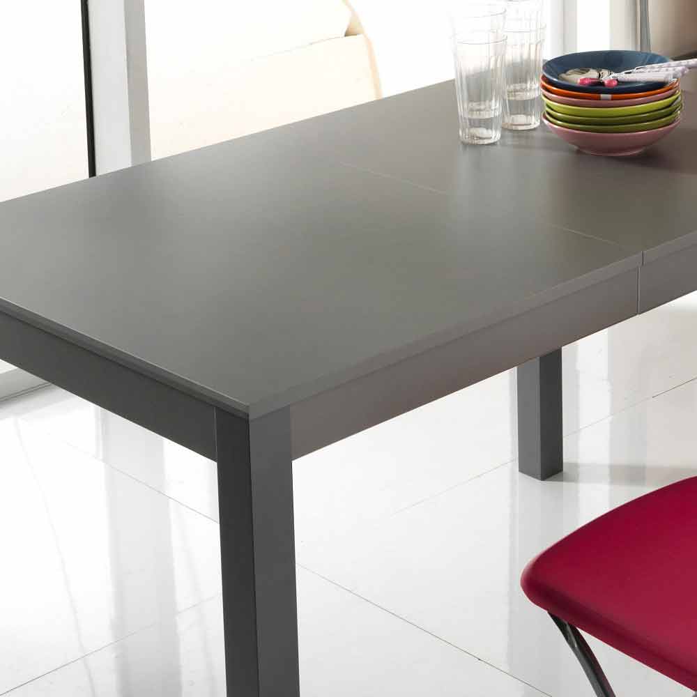 Table with base in solid beech wood and melamine top. It has 2 extensions of 40 cm each, housed inside the table. Available in different colours.