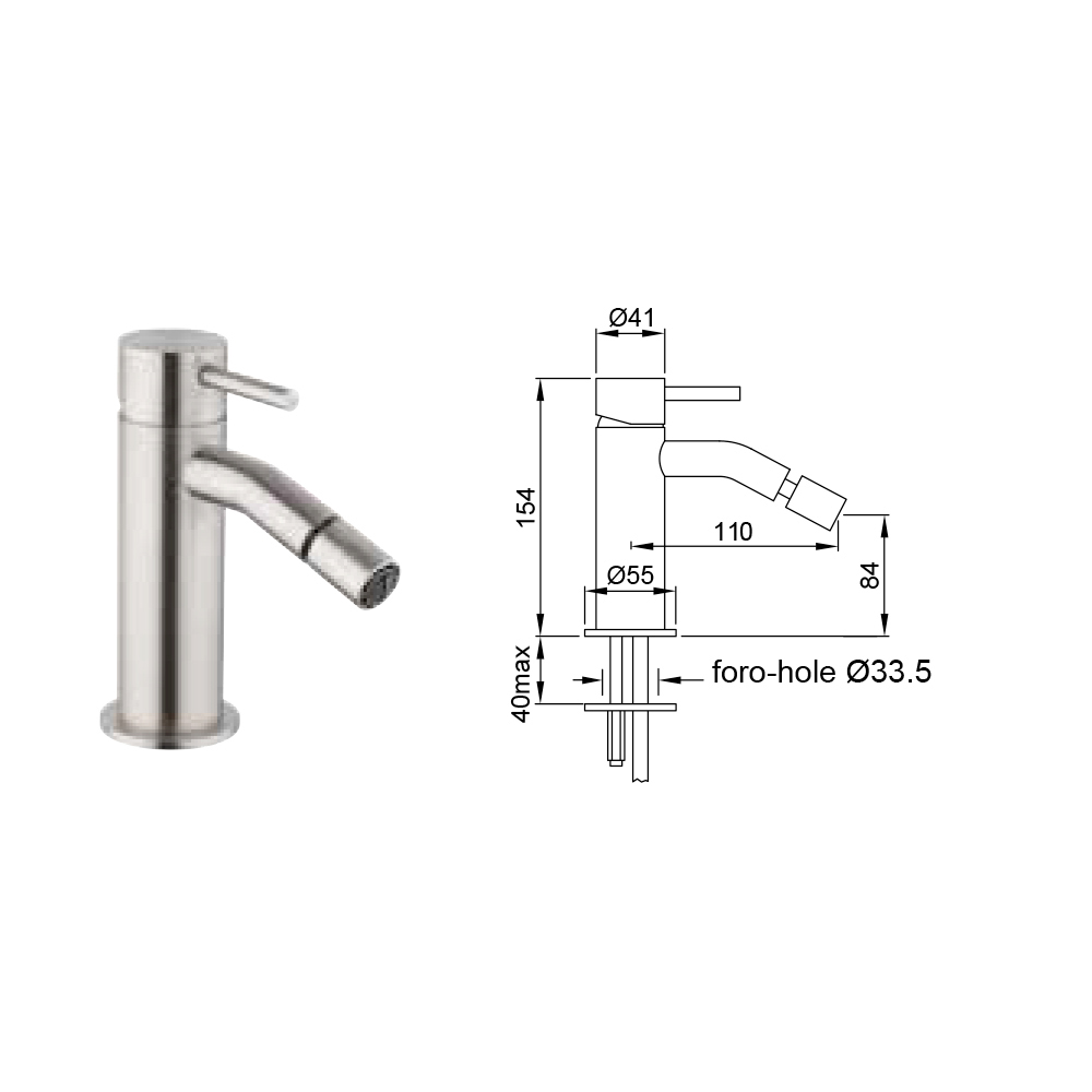 Bidet Mixer Without Drain in AISI 316L Steel - Artigli