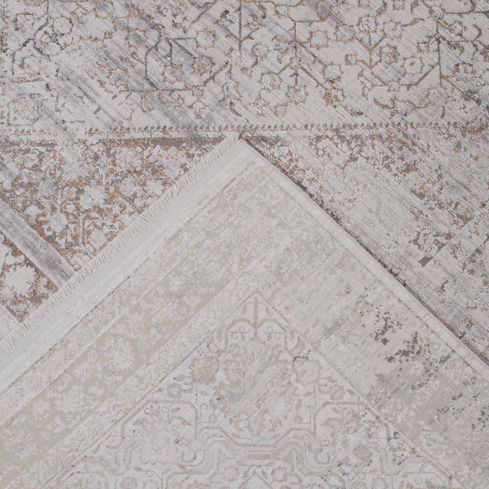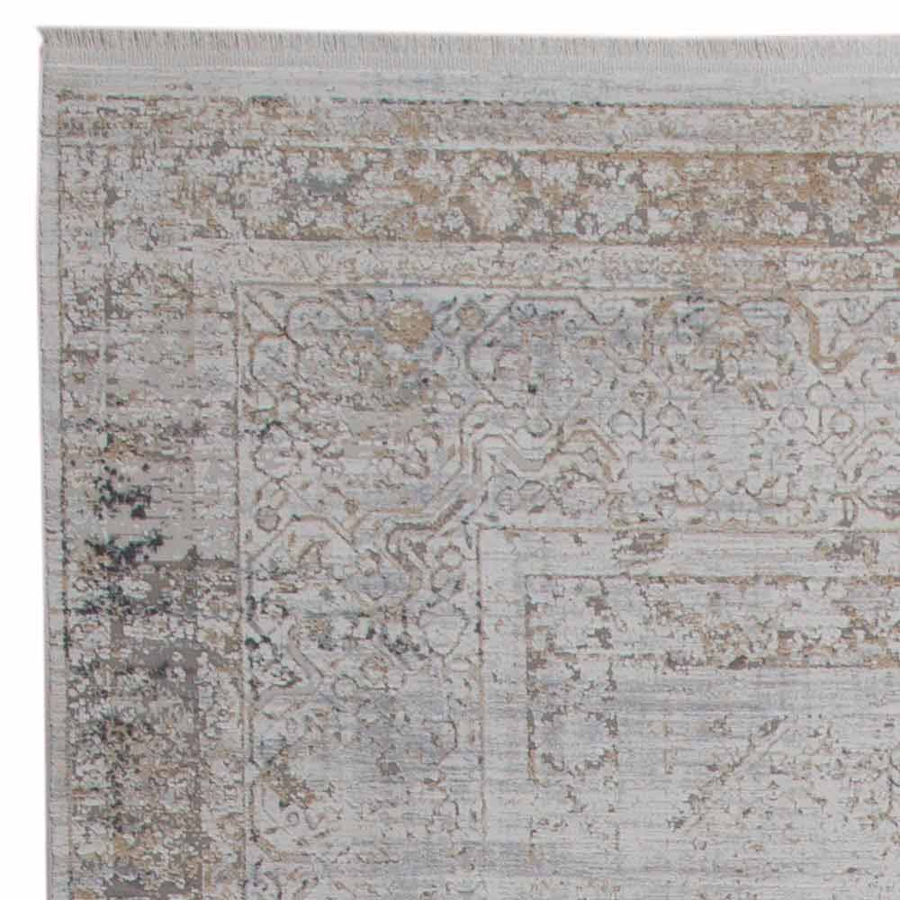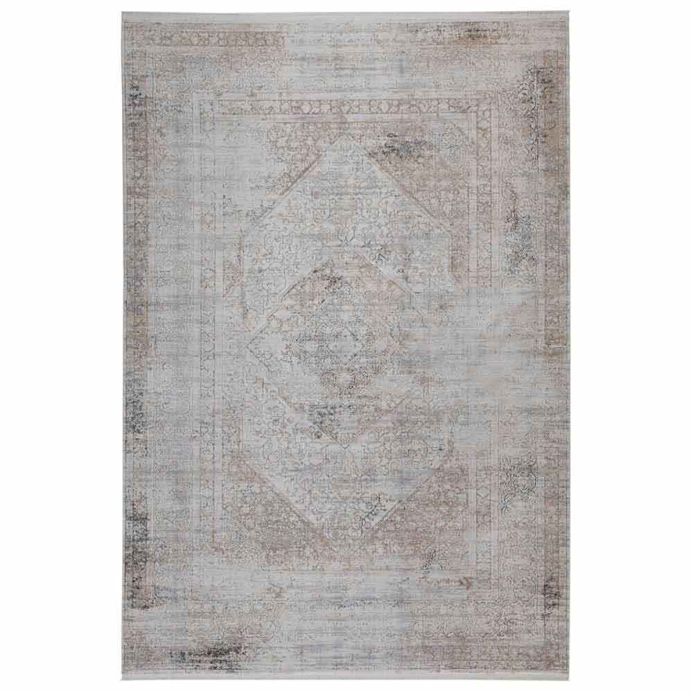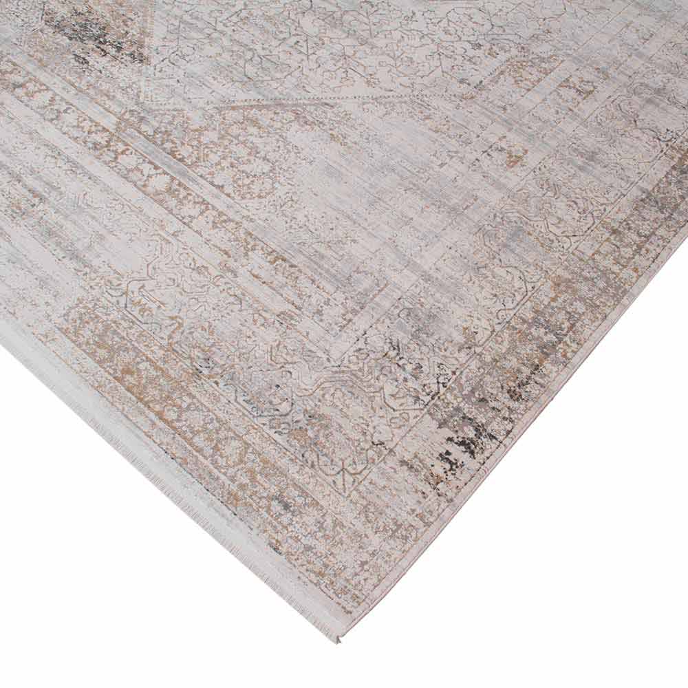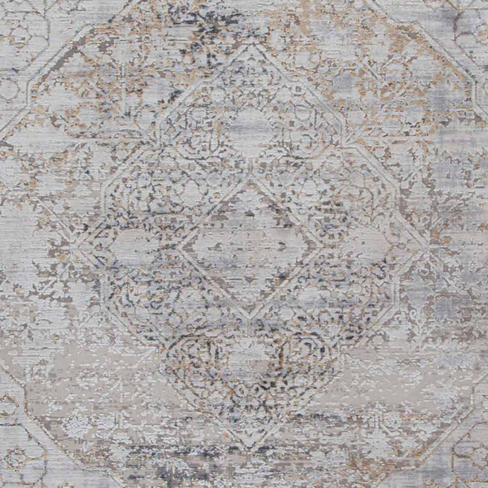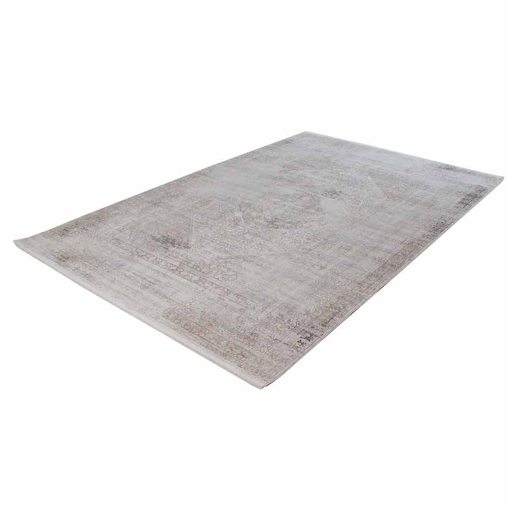 Vintage design non-flip carpet with decor available in two dimensions in grey/beige acrylic and viscose.
