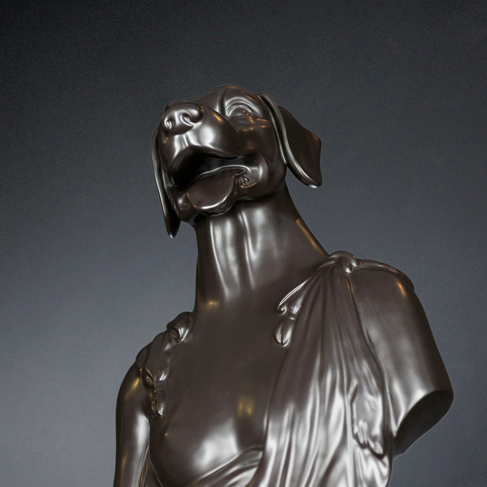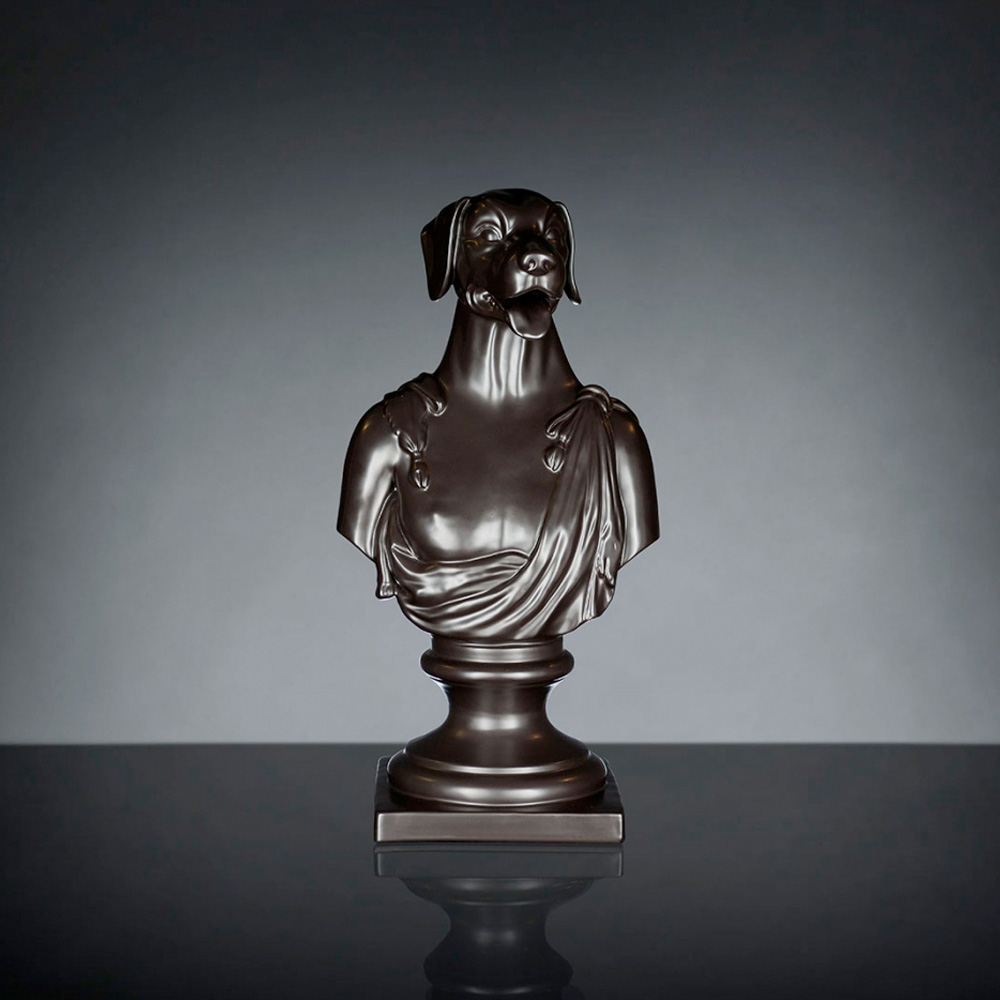 Decorative ceramic sculpture handcrafted by Italian artisans depicting Argos, Ulysses' dog.