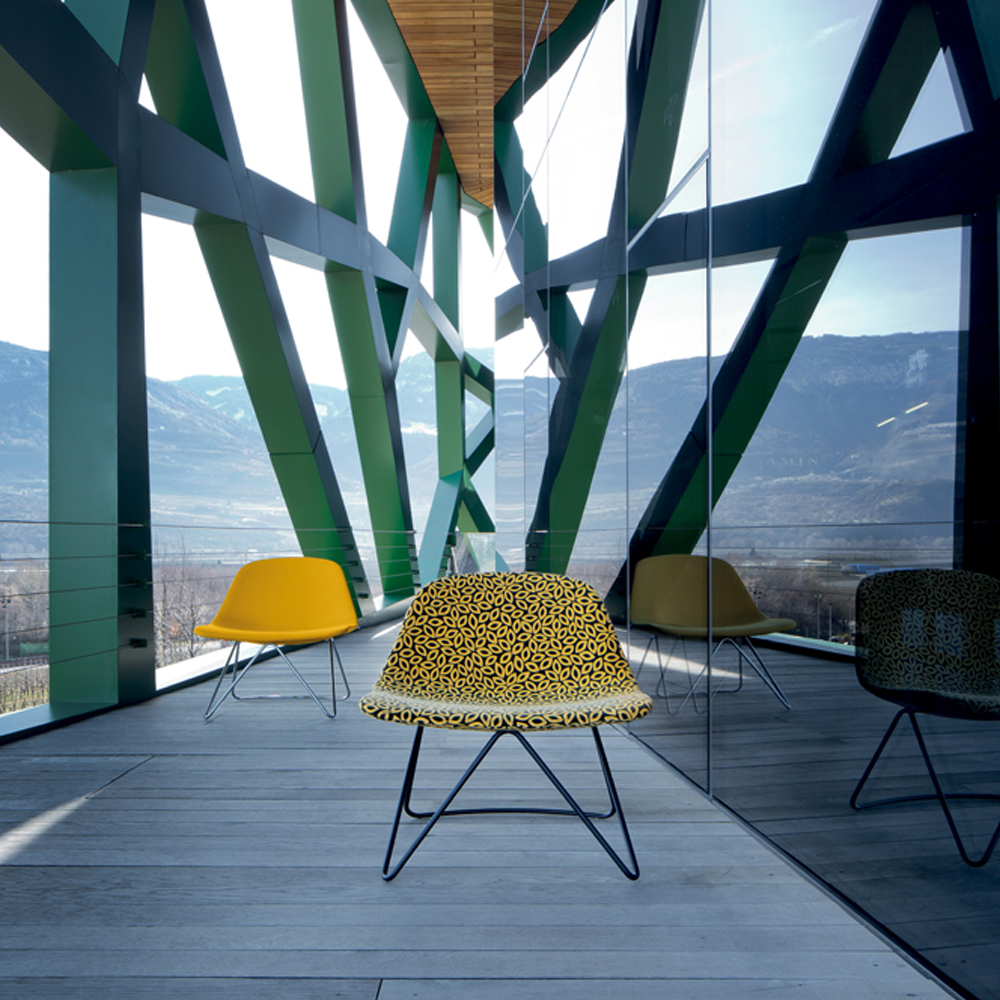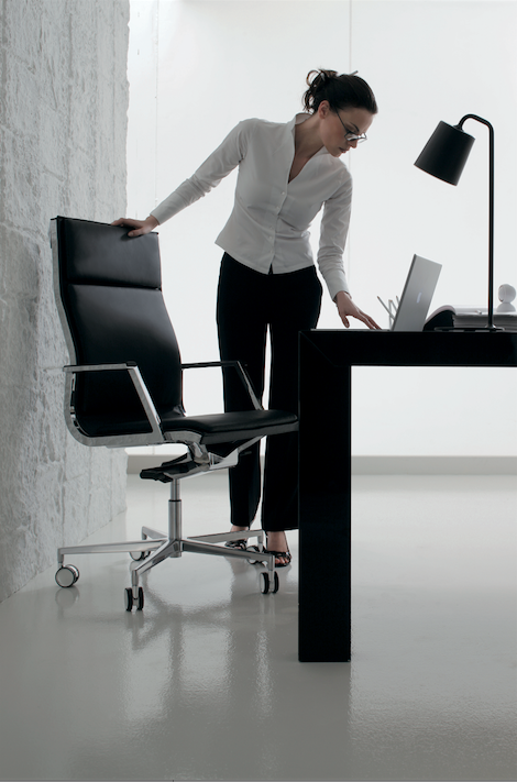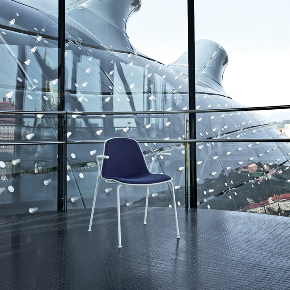The framework, available in two backrest heights, high and medium, flount many chromium-plated aluminum components and it is supported by 4-5 way bases, or in the sled version. Three covers: one confortable with large padding, the second in mesh, and the third - the crown jewel of the range - with flat padding with seamless grooves thanks to thermoforming.