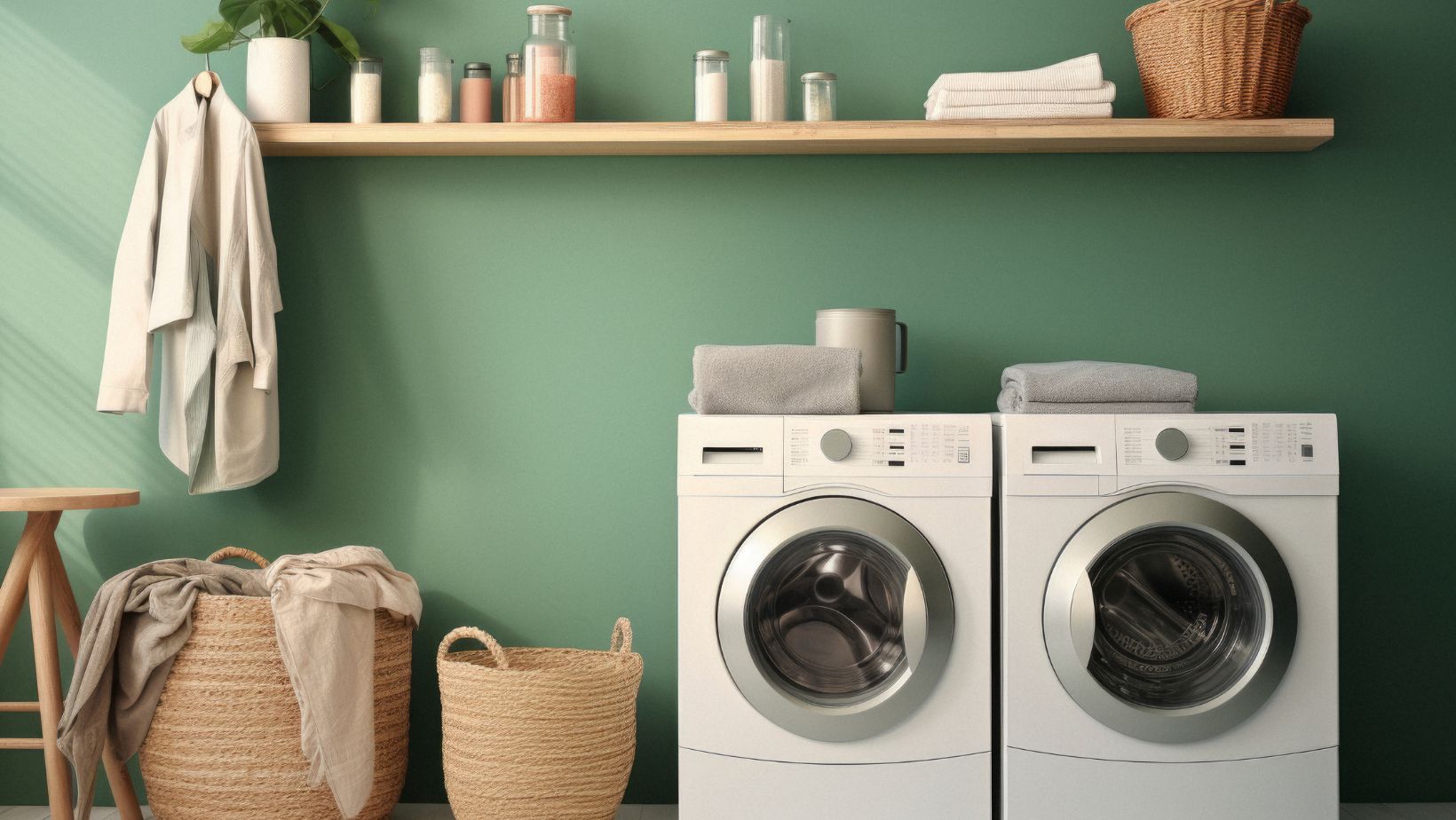 Countertop : If space allows, a large countertop above the washer and dryer is ideal for folding clothes and organizing laundry before and after washing.