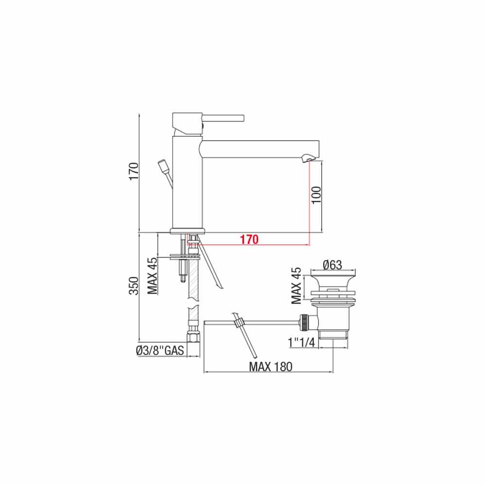 Modern bathroom sink mixer in chrome brass Made in Italy.