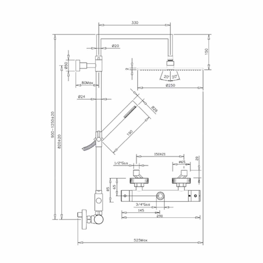 Modern shower column in chromed brass, steel and ABS Made in Italy.