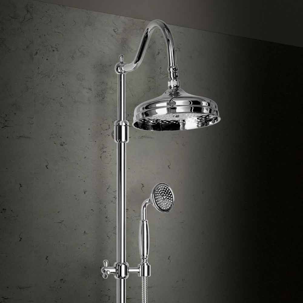 Classic design shower column in brass with shower head and hand shower, fine Made in Italy item.
