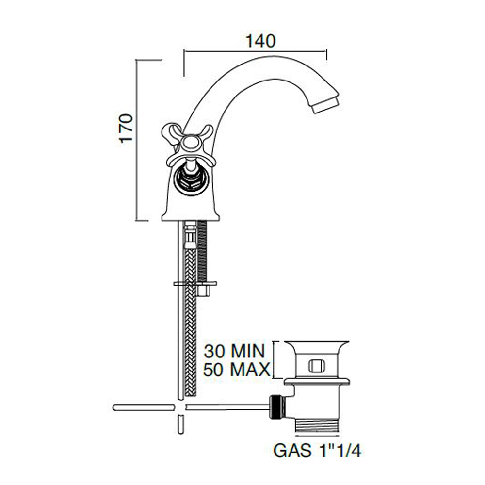Classic-style single-hole basin tapĀ made of handcrafted brassĀ made in Italy.