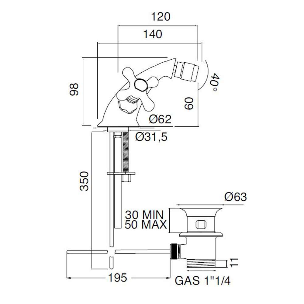 one-hole bidet tap for single-hole bidet with drain è entirely