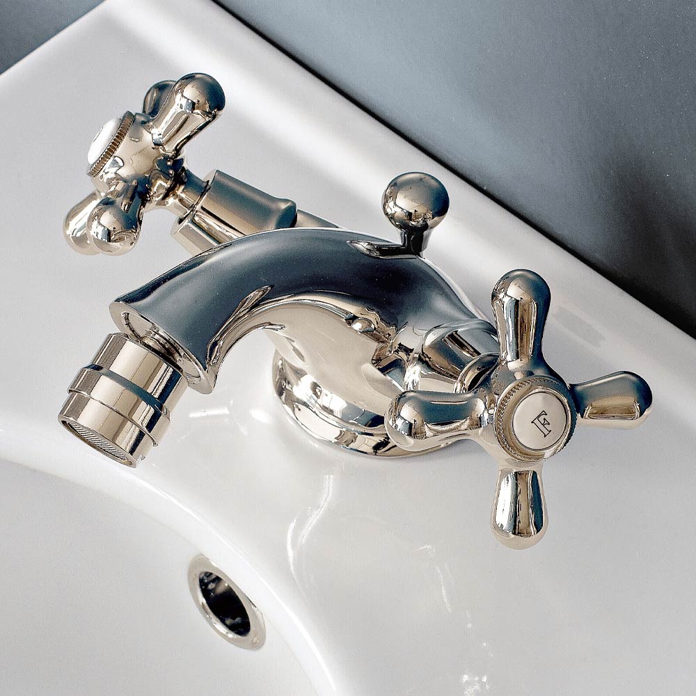 Single-hole bidet tap with handcrafted brass flush made in Italy.