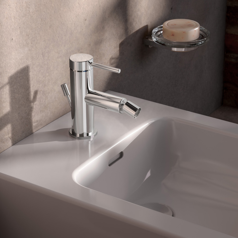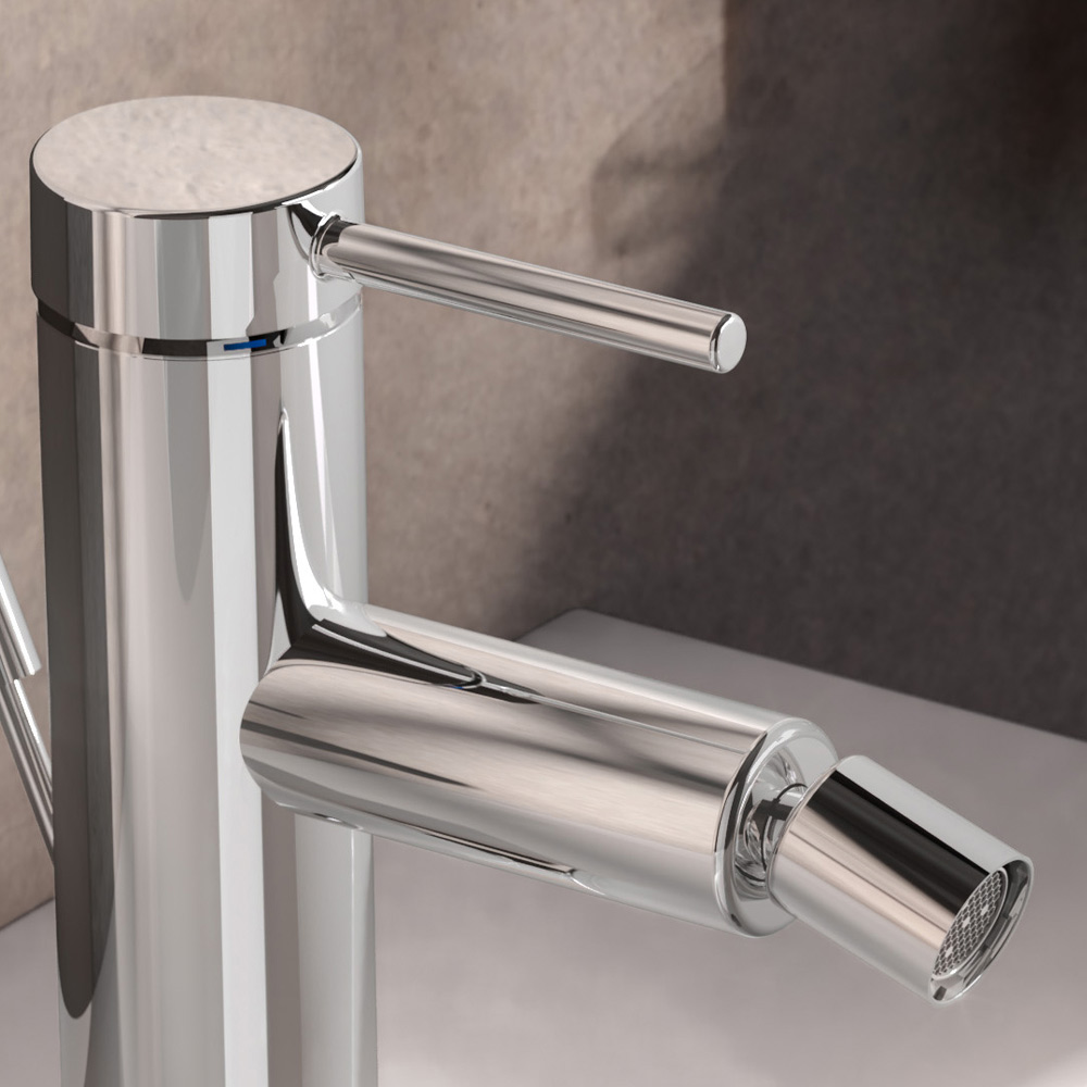 single-lever bidet mixer has a design with perfect synchrony between the handle and the spout.