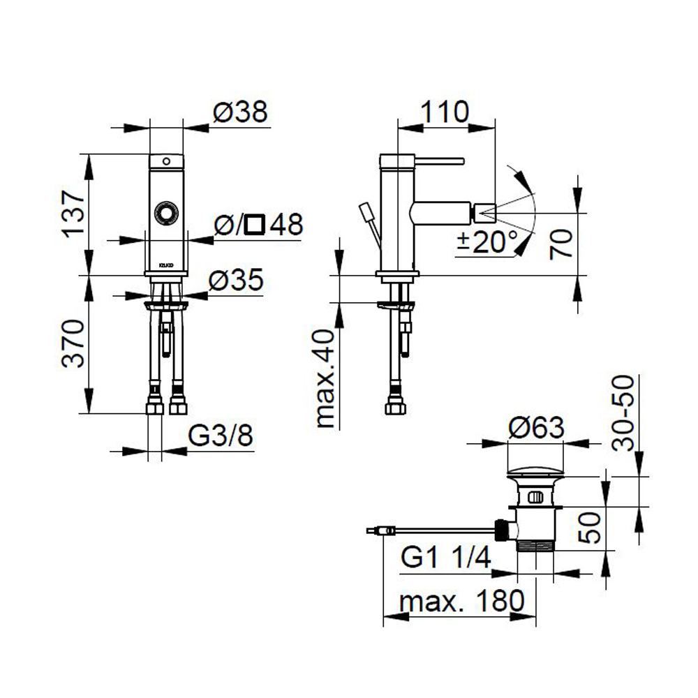 high quality materials. Technical features:- with or without 1 1/4 inch pop-up waste;