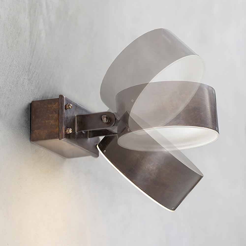 Rustic design wall lamp in antiqued brass, Acelum by Aldo Bernardi, made in Italy.