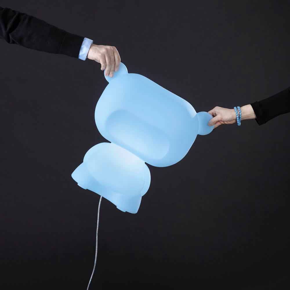 Pure is a teddy bear-shaped table lamp perfect for decorating your interiors in a fun way and winning attention with its tenderness and sympathy. The shape of this lamp helps to liven up and give a touch of originality outside the common schemes of your environment.