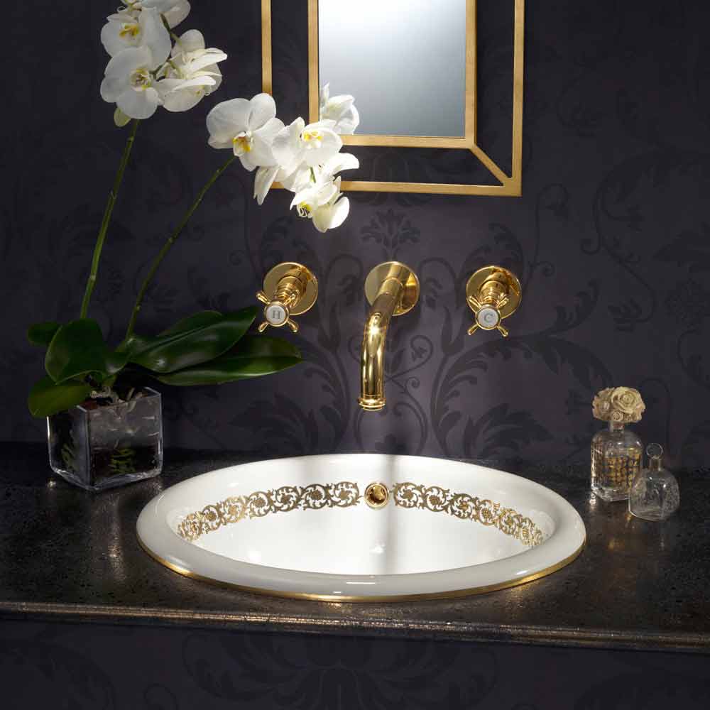 Bathroom built-in sink in fire clay and 24k gold made in Italy, Otis