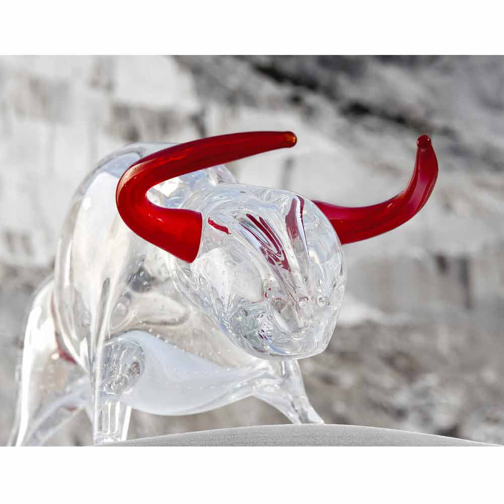 Bull-shaped statue in stained glass made in Italy, high quality.