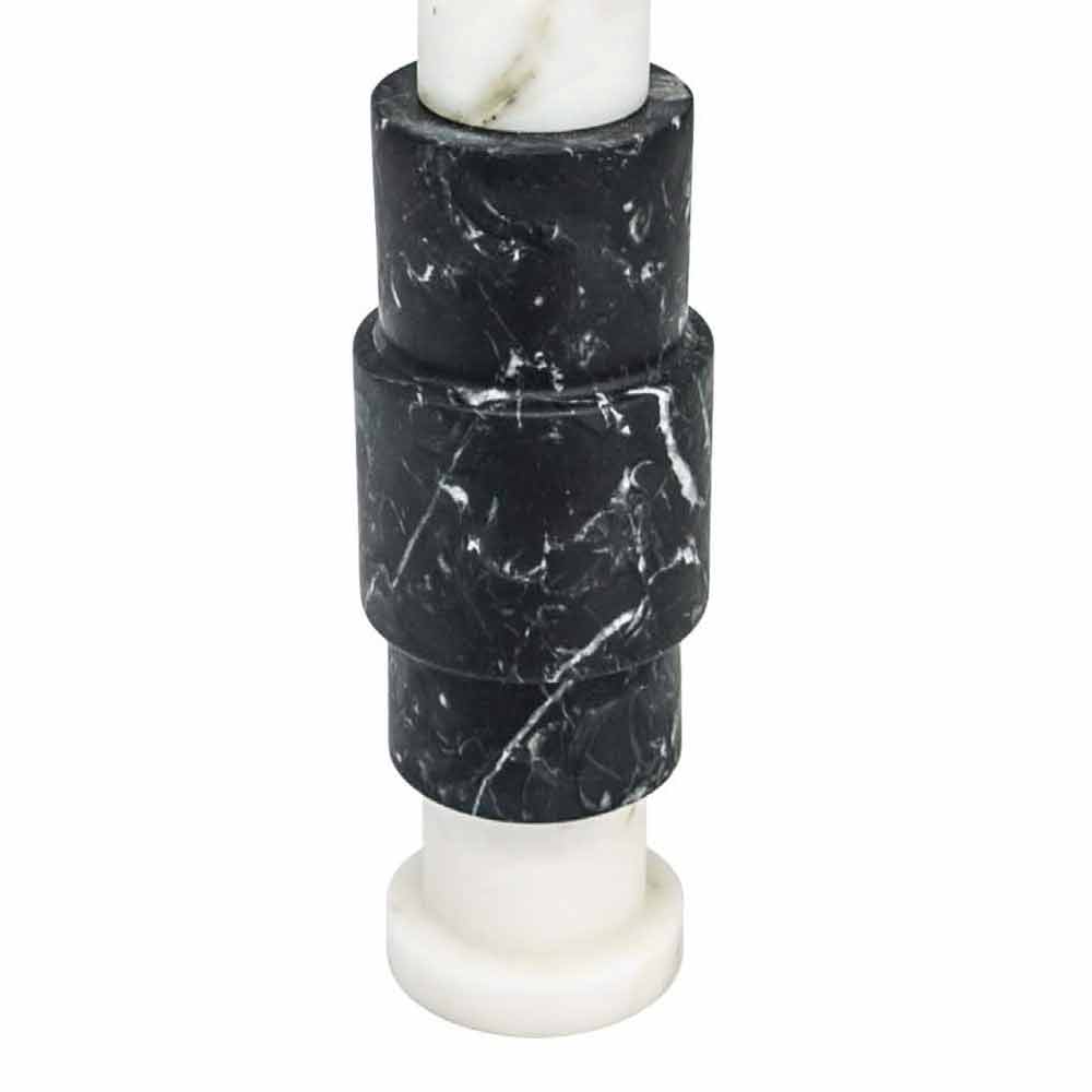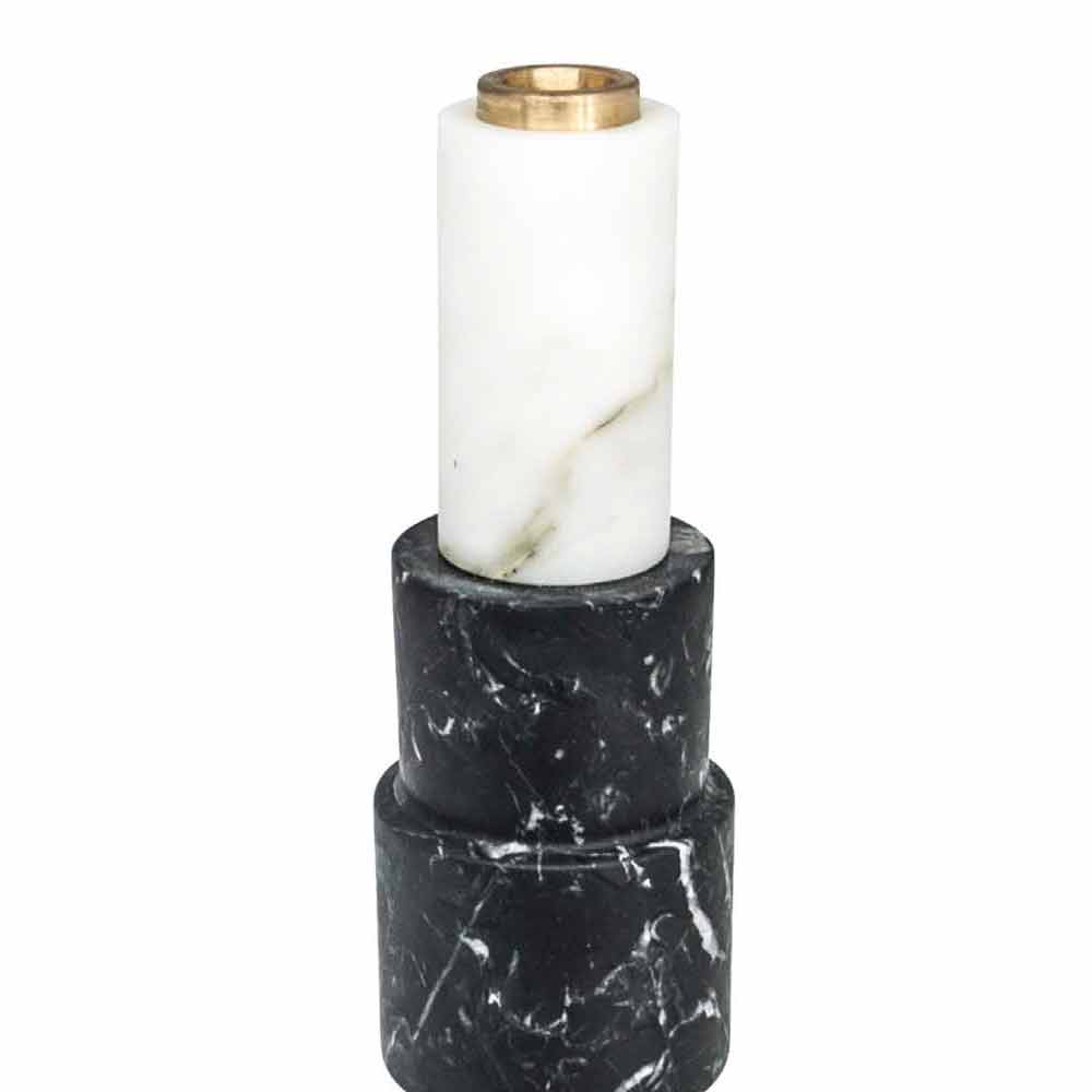 Candle holder made with high quality marble and brass . It is to be considered a unique piece as each block of marble used differs from the others for veins and shades. The white marble comes from the Poggio Silvestre quarry, a source of first quality marble classified since the last century while the black Marquinia marble is extracted from Spanish quarries.