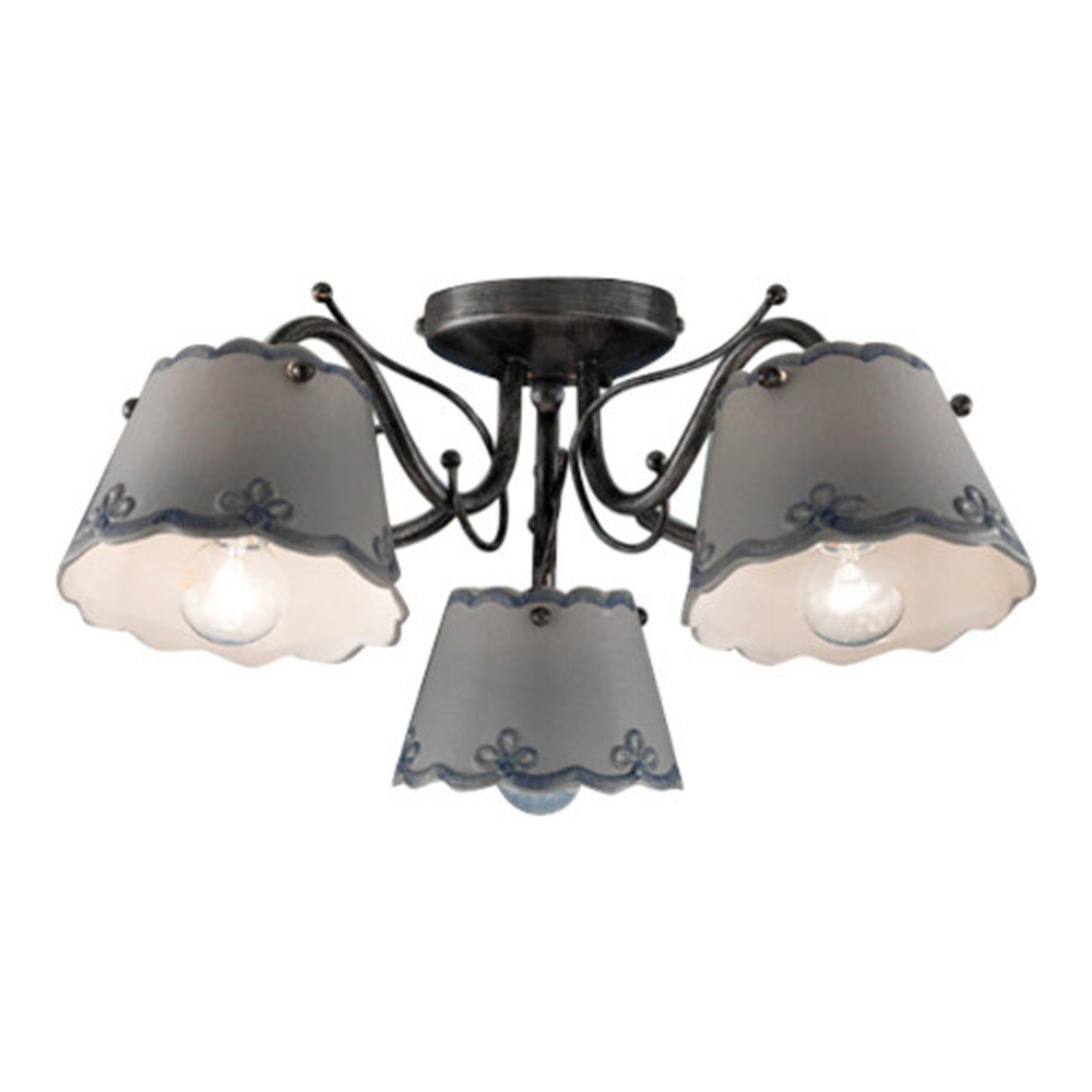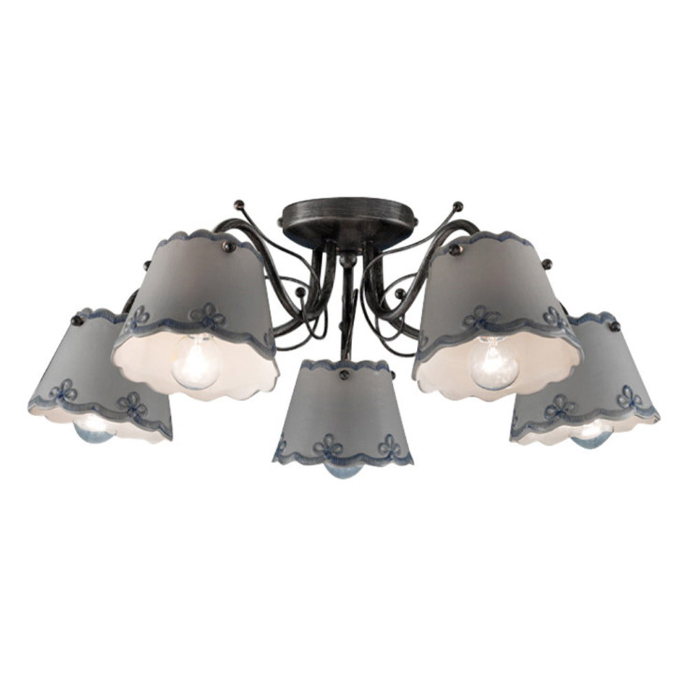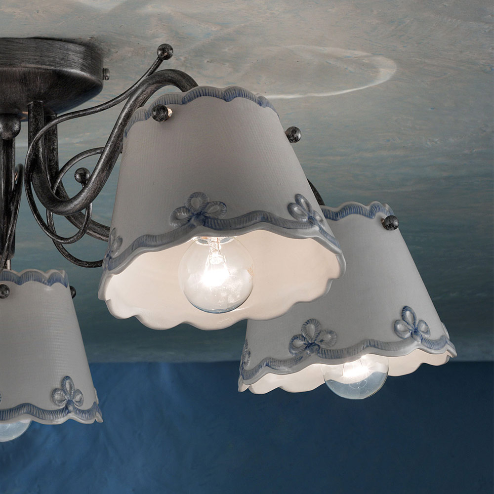 Ceiling lamp 3 or 5 lights crafted in metal and ceramic with embroidery effect, made in Italy by Ferroluce.