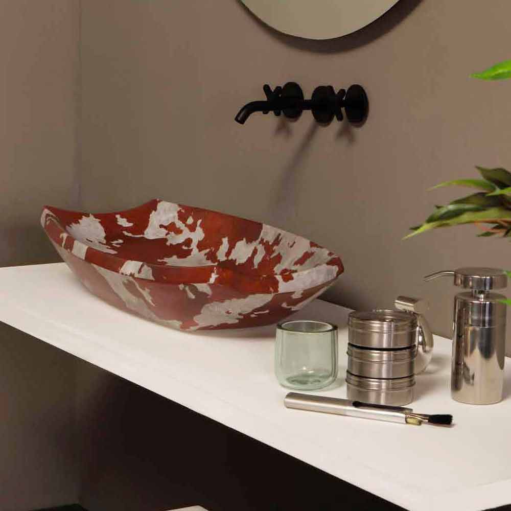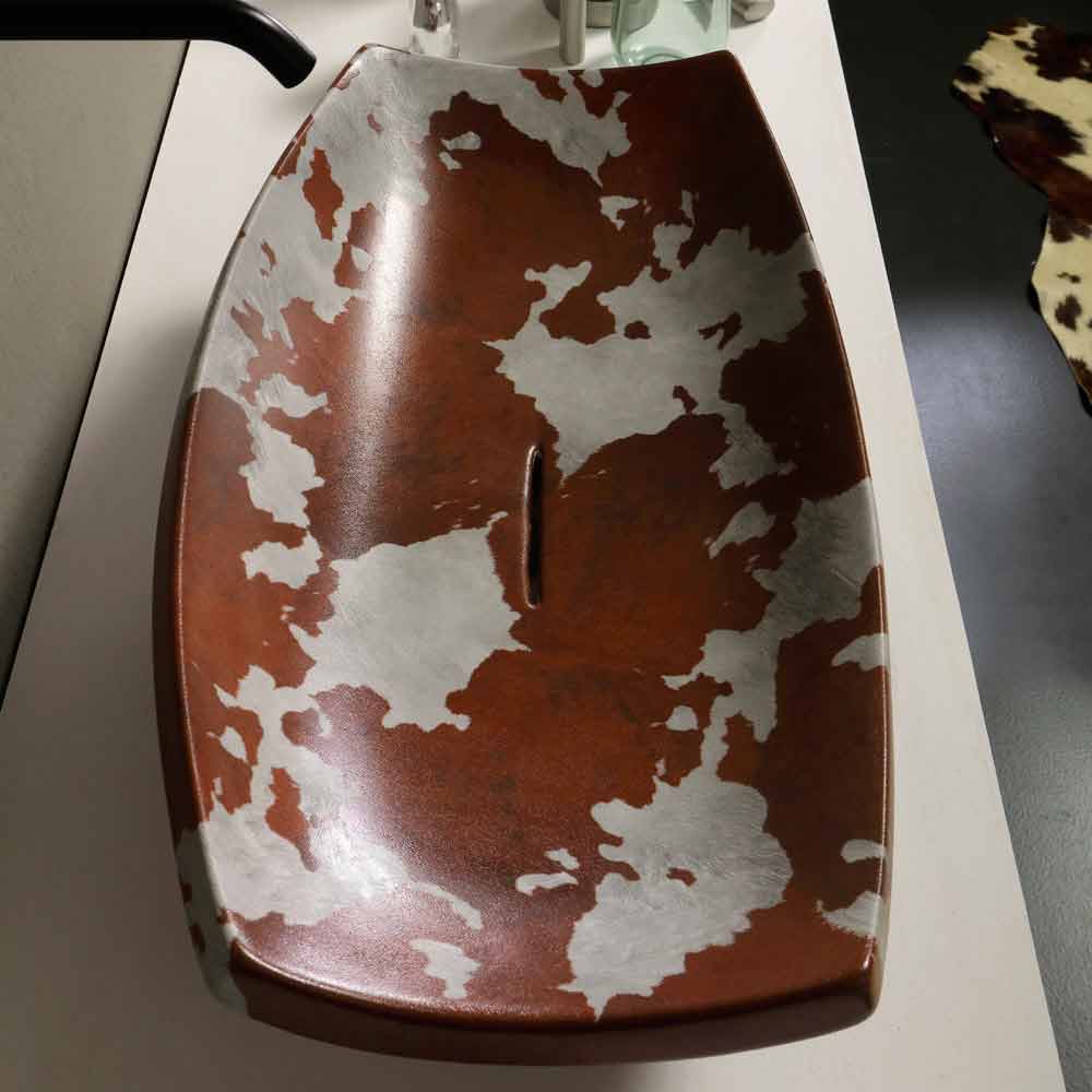 Ceramic countertop basin Laura with cowhide pattern, made in Italy