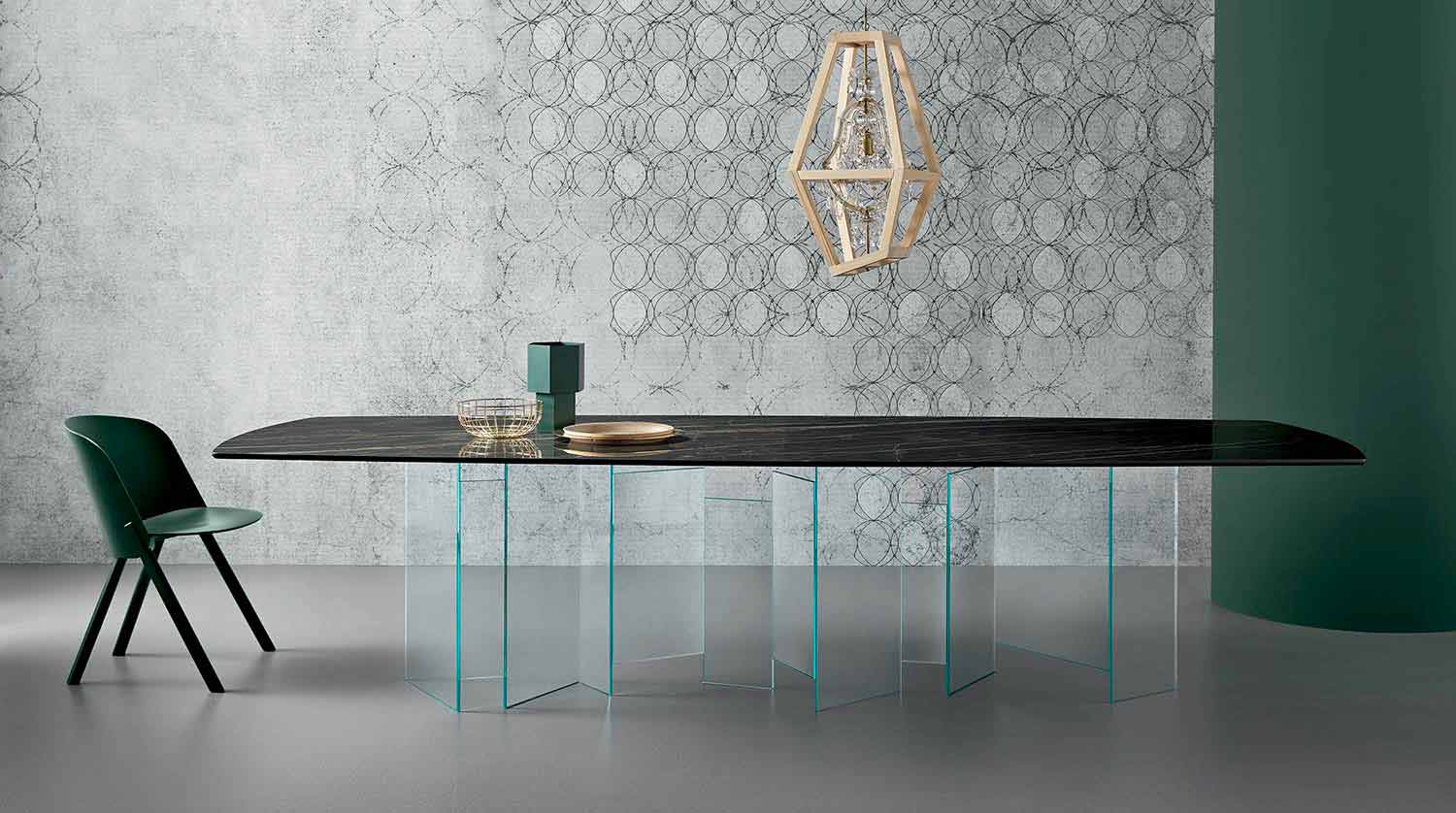 - ceramic top Orobico grey finish, extra-clear glass base.
