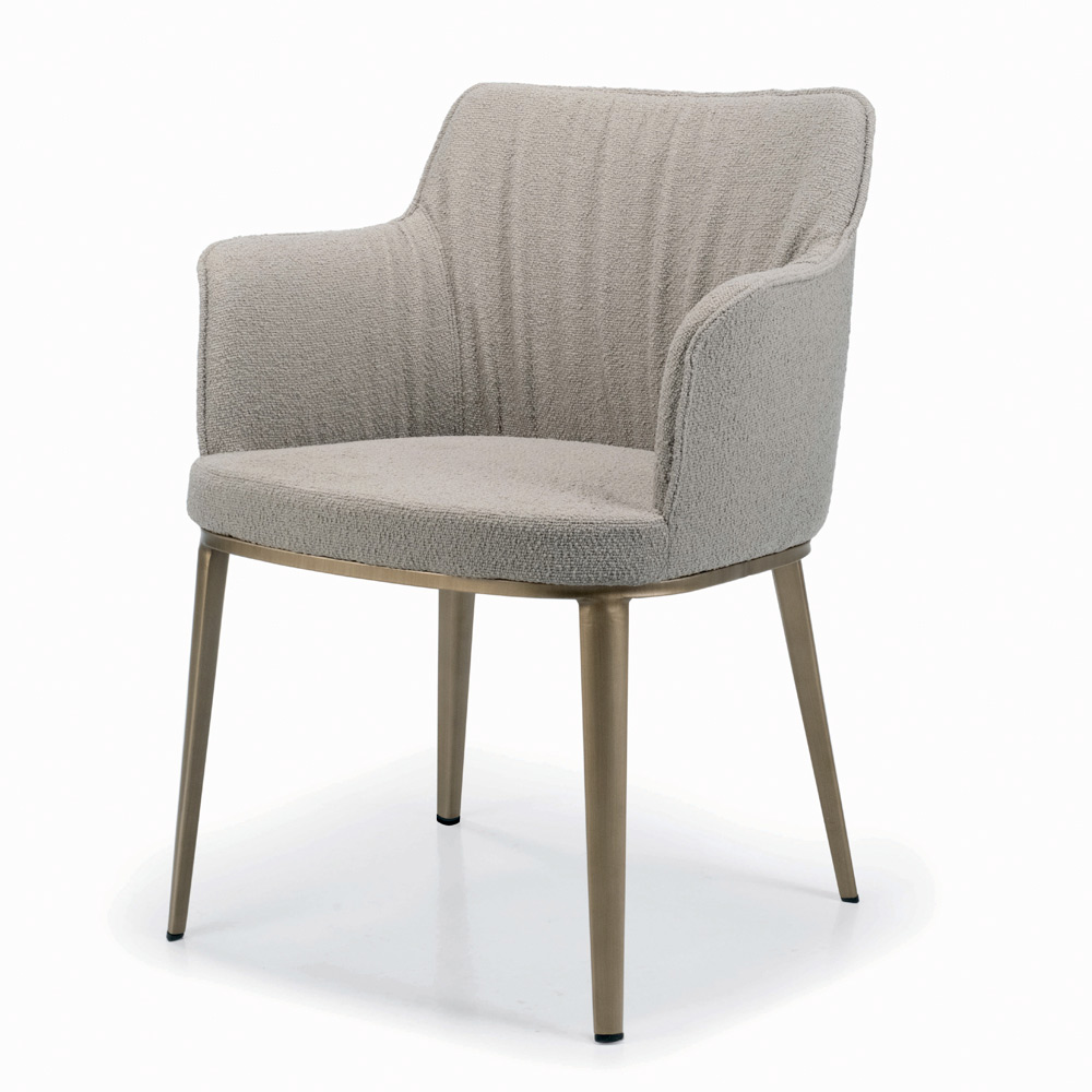 Available finishes:- RICCIO R5 stone grey fabric, champagne legs