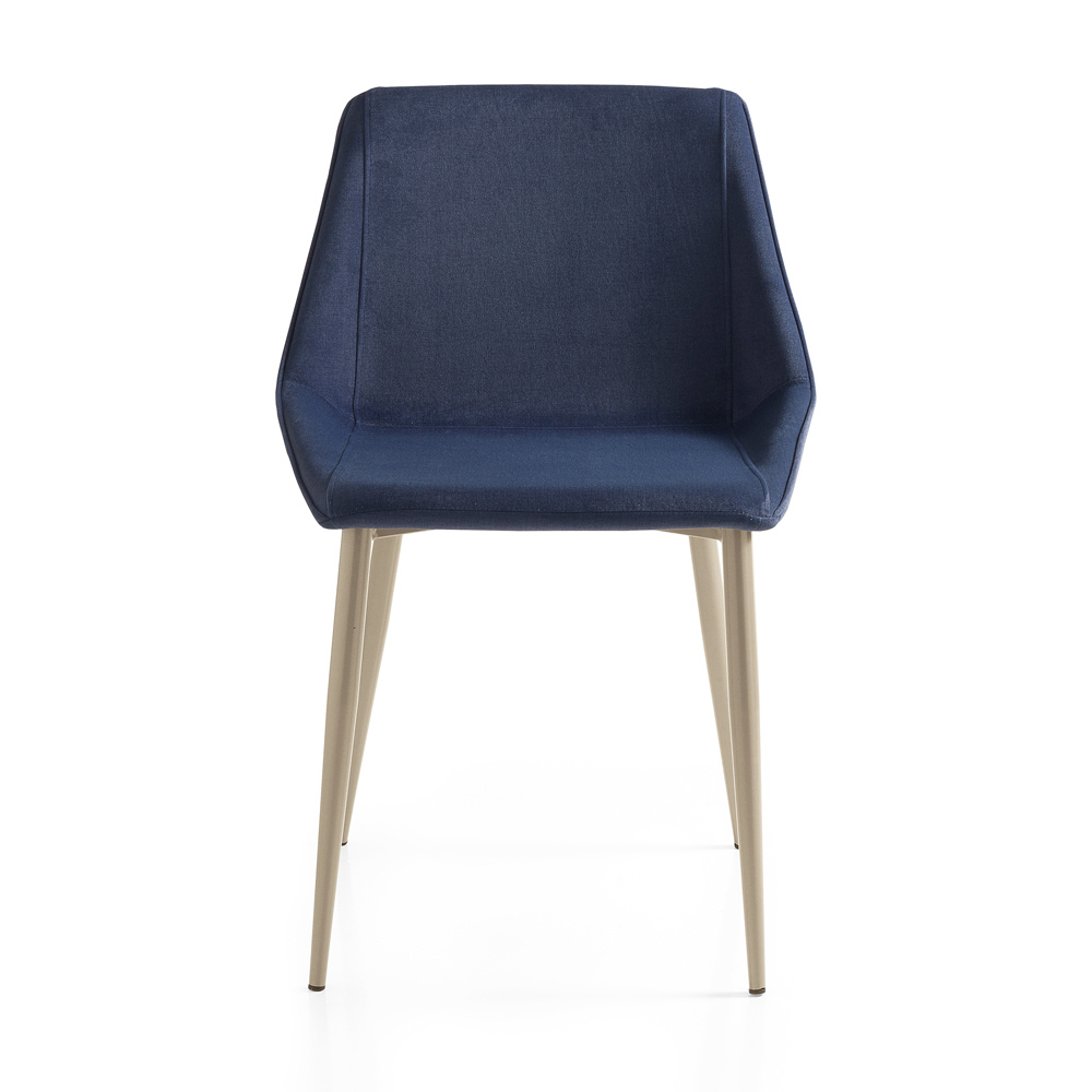 This chair with its slim design and soft seat represents timeless elegance. Its profile is welcoming and the padding, together with the ergonomic queues, ensures comfort that lasts over time, inviting long moments of conviviality or work.