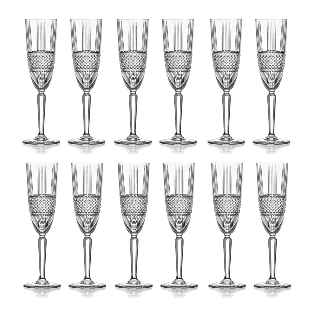 Champagne Flute Goblet Set in Eco Crystal Decor 12 Pcs - Lively