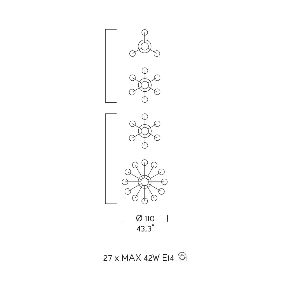Bulbs (not included) : 27 x MAX 42W E14