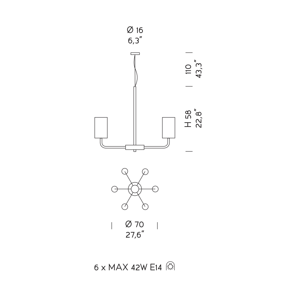 Bulbs (not included) : 6, 9 or 12 x MAX 42W E14