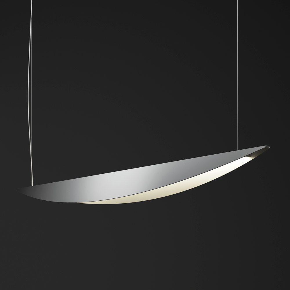 This pendant lamp epitomizes the perfect blend of contemporary design and professional functionality . Its tapered, slim, and aerodynamic shape evokes a wing profile, lending the room a sense of lightness and movement .