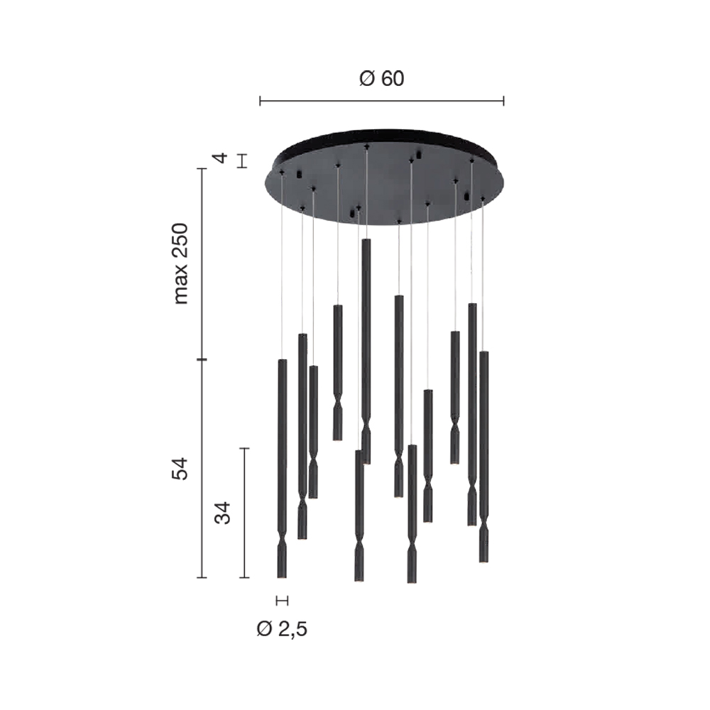 Chandelier with 12 LED Lights in Painted Metal and Adjustable Cables - Larch