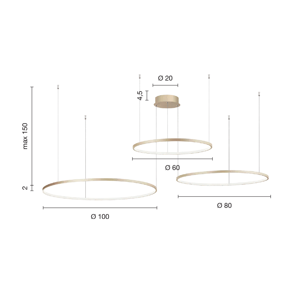 Available sizes:- 3 lights: diameter 100cm / diameter 80cm / diameter 60cm x height 2cm