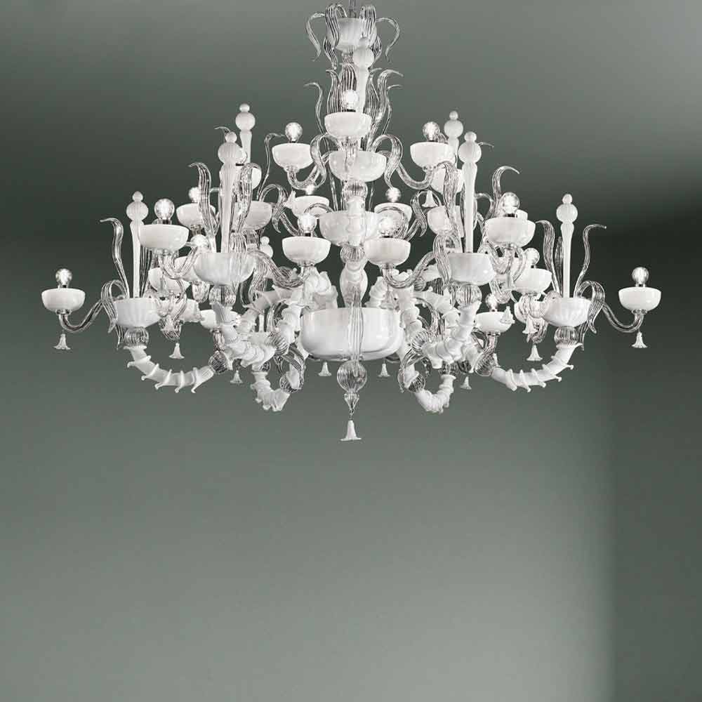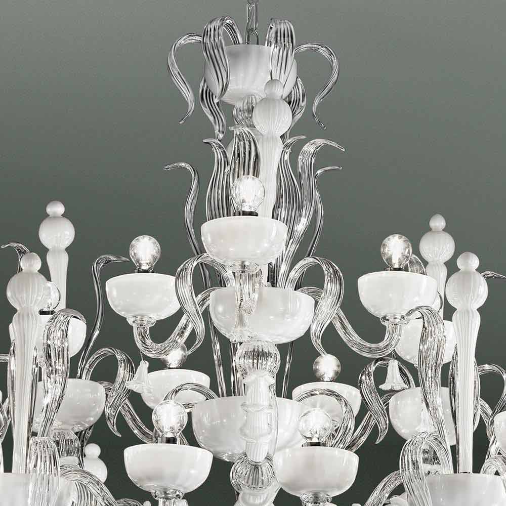 Handcrafted chandelier with 27 lights in Venetian glass and metal, luxury Made in Italy.
