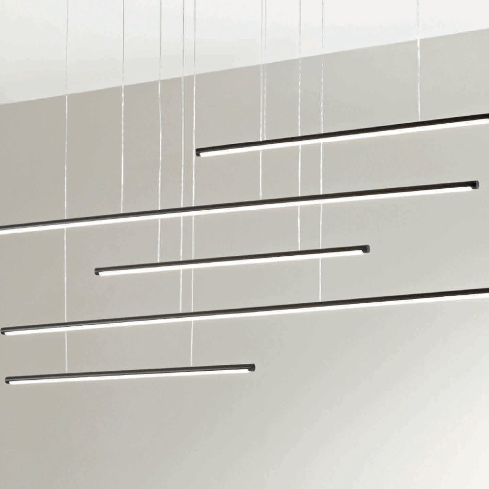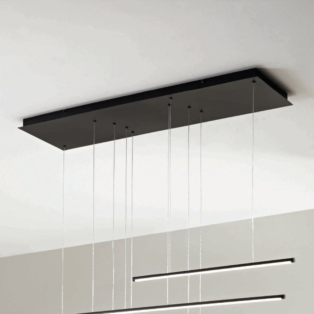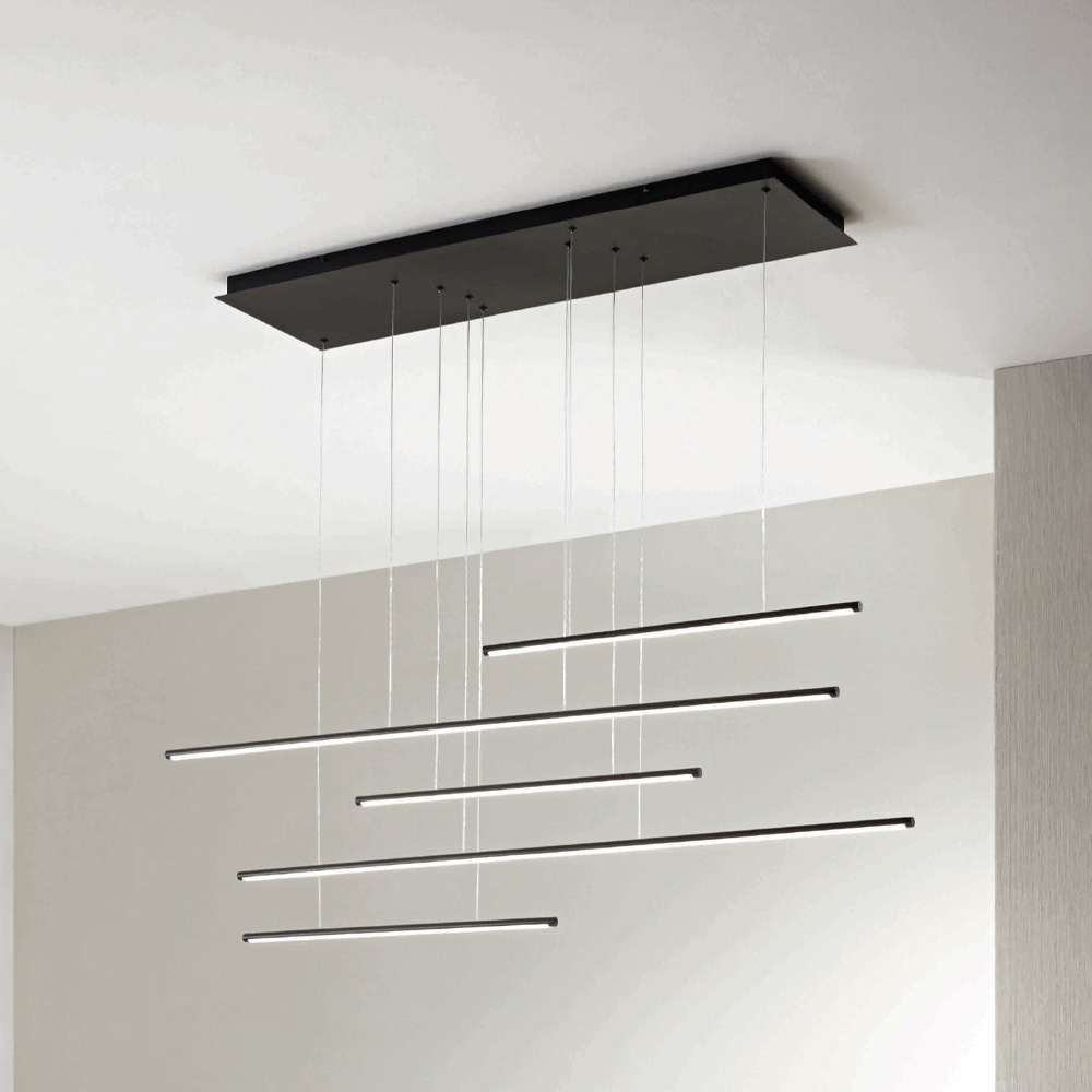 Chandelier entirely produced in Italy made of painted metal in black finish with dimmable LED light and length- adjustable cables .