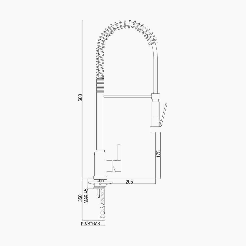Kitchen sink mixer made in Italy in chromed brass . Complete with cartridge defined ES which supplies cold water when the lever is raised in the central position, thus avoiding the request for hot water to the boiler allowing a consequent saving of energy. This interesting aspect is combined with the functionality of the product conferred by the adjustable spout with spring and by the 2-jet hand shower that allow a simple and extremely practical use.