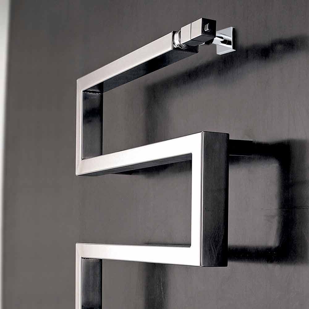 Towel radiator in chrome steel, in the hydraulic version. A collection with a strong graphic sign. Form, material, function and technology create no longer simple towel warmers but real furnishing elements.