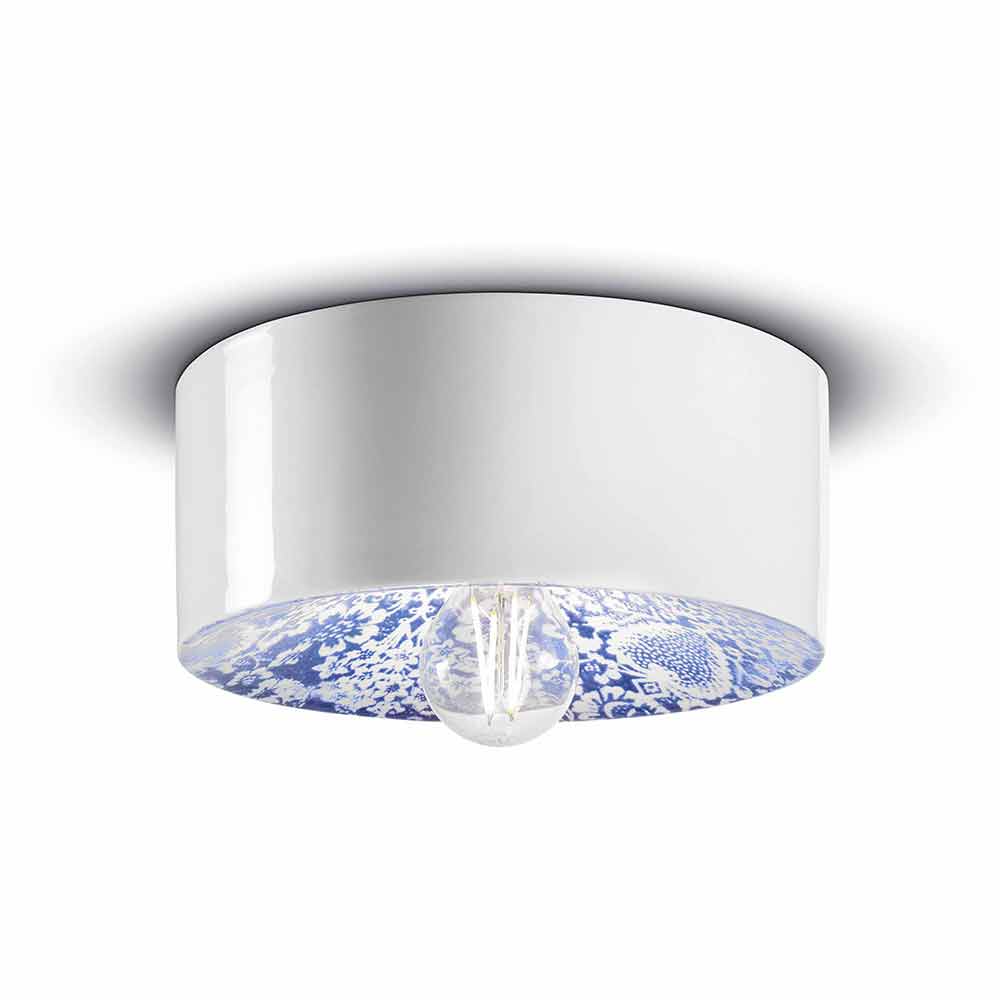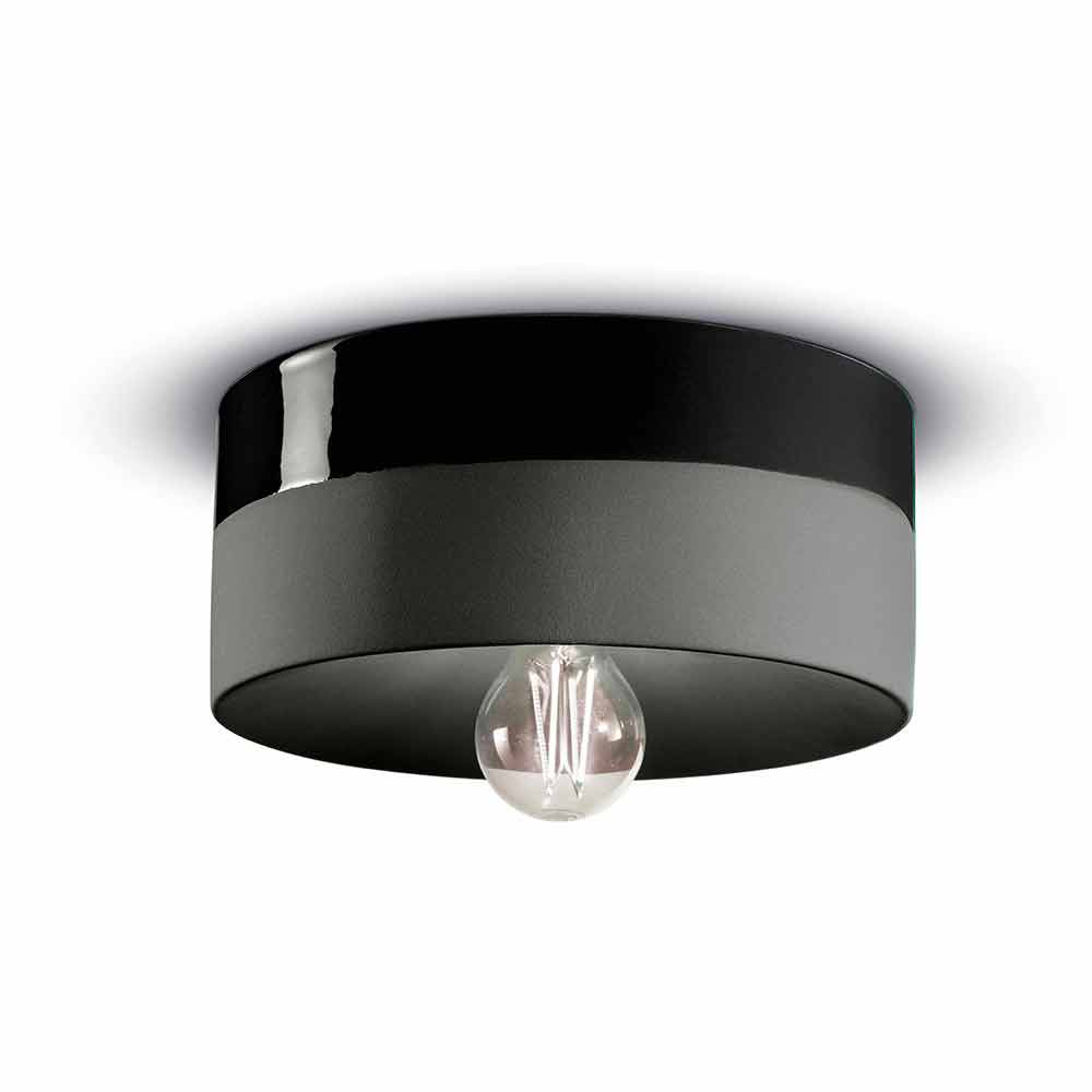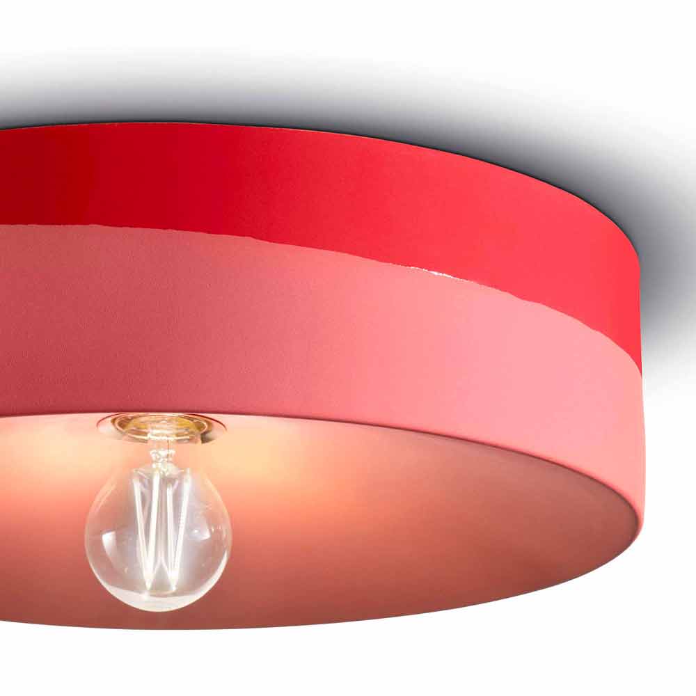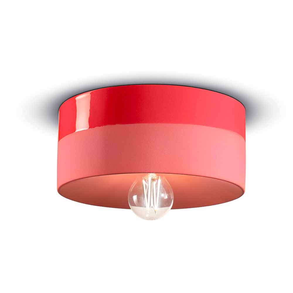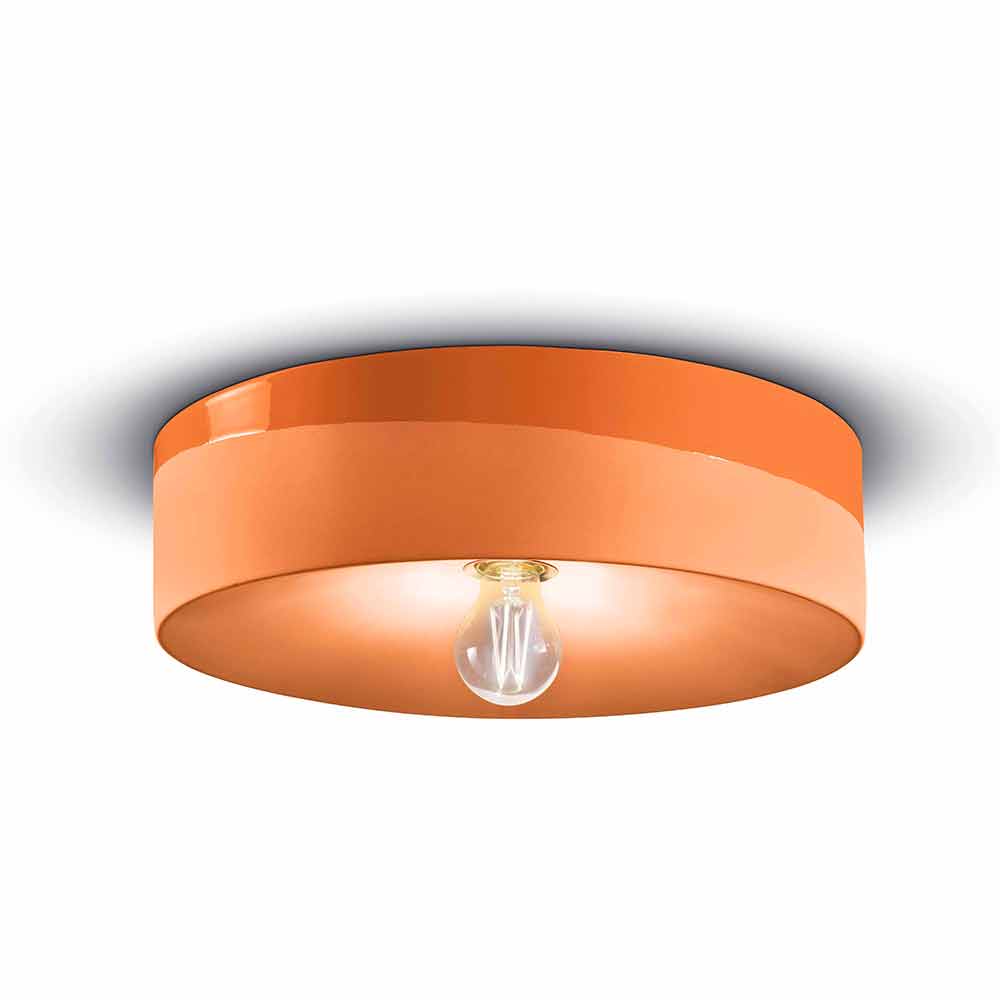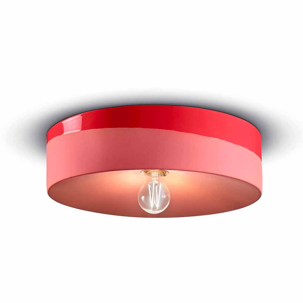 Luxury and retro-style circular ceiling light in colored ceramic, handcrafted in Italy.
