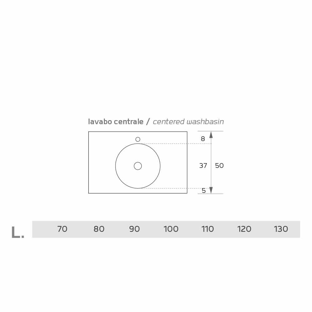- L 130 x W 50 x H 12 cm (washbasin 37 cm).
