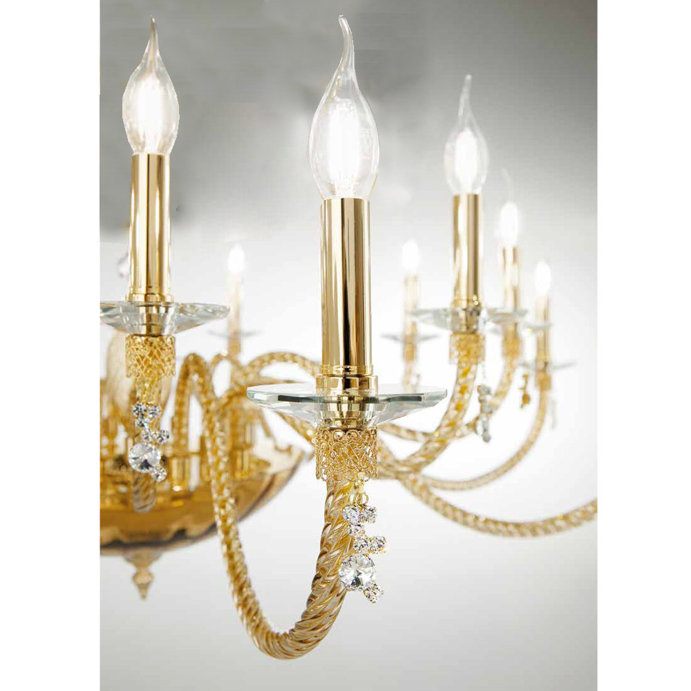 12 lights chandelier in blown glass and jewel details, Italian luxury.