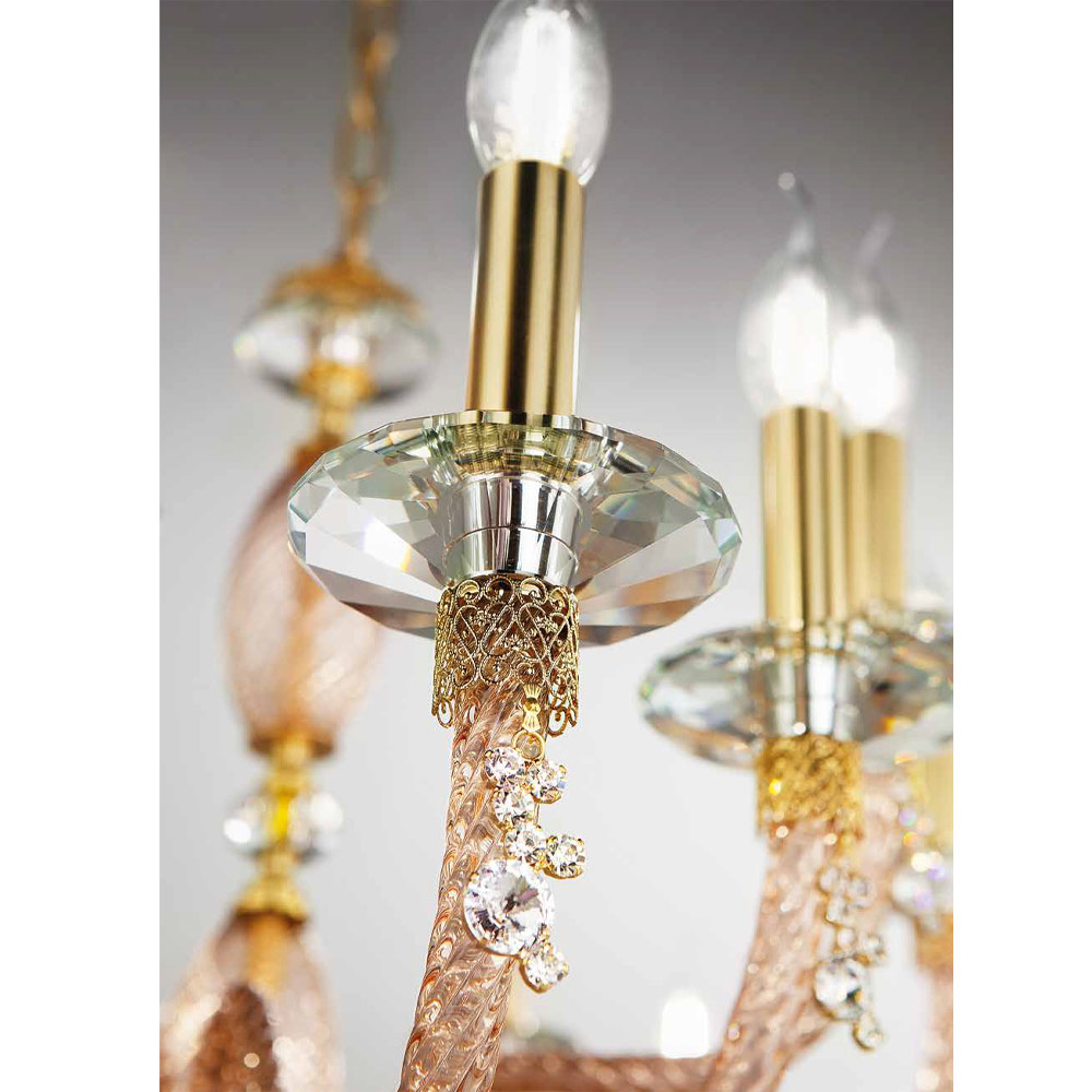 18 lights chandelier in blown glass and jewel details, Italian luxury.