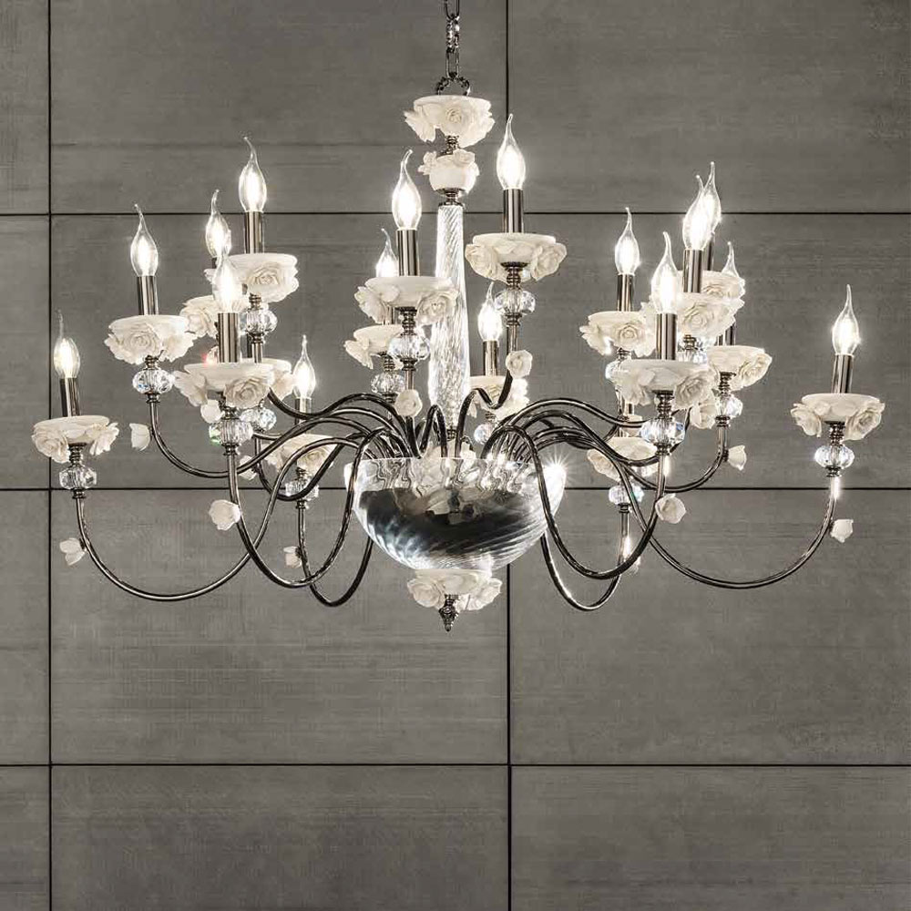 18 lights chandelier in porcelain and blown glass, luxury made in Italy.