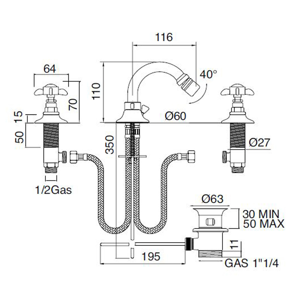 3-hole bidet tap tap with drainĀ ĆØ entirely