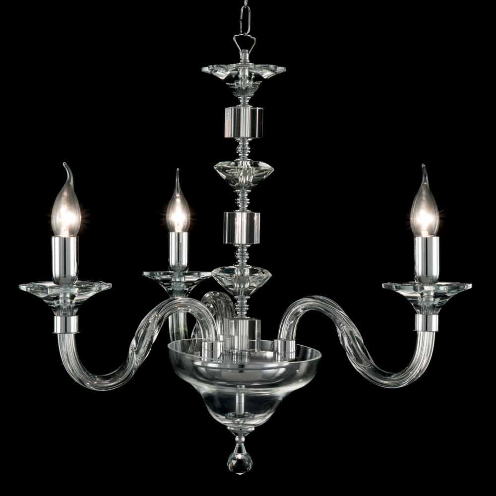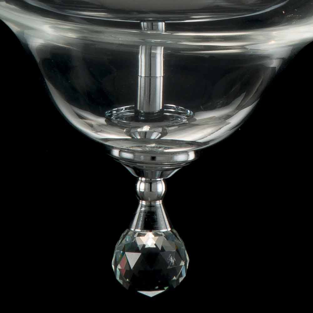 Handmade transparent glass chandelier with crystal decorations. Chromed finishes.